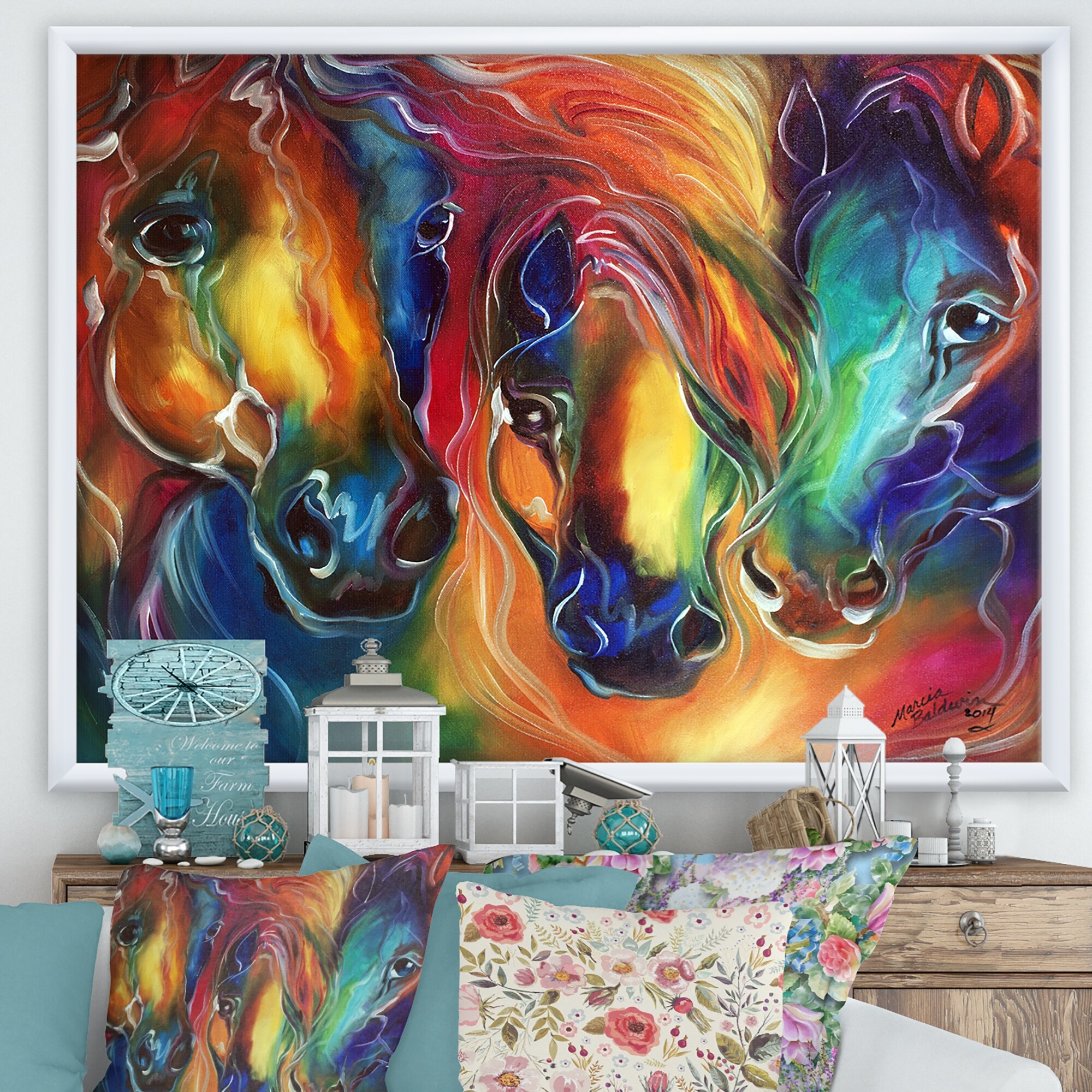 Designart "Color My World With Horses" Cottage Framed Canvas Artwork Print