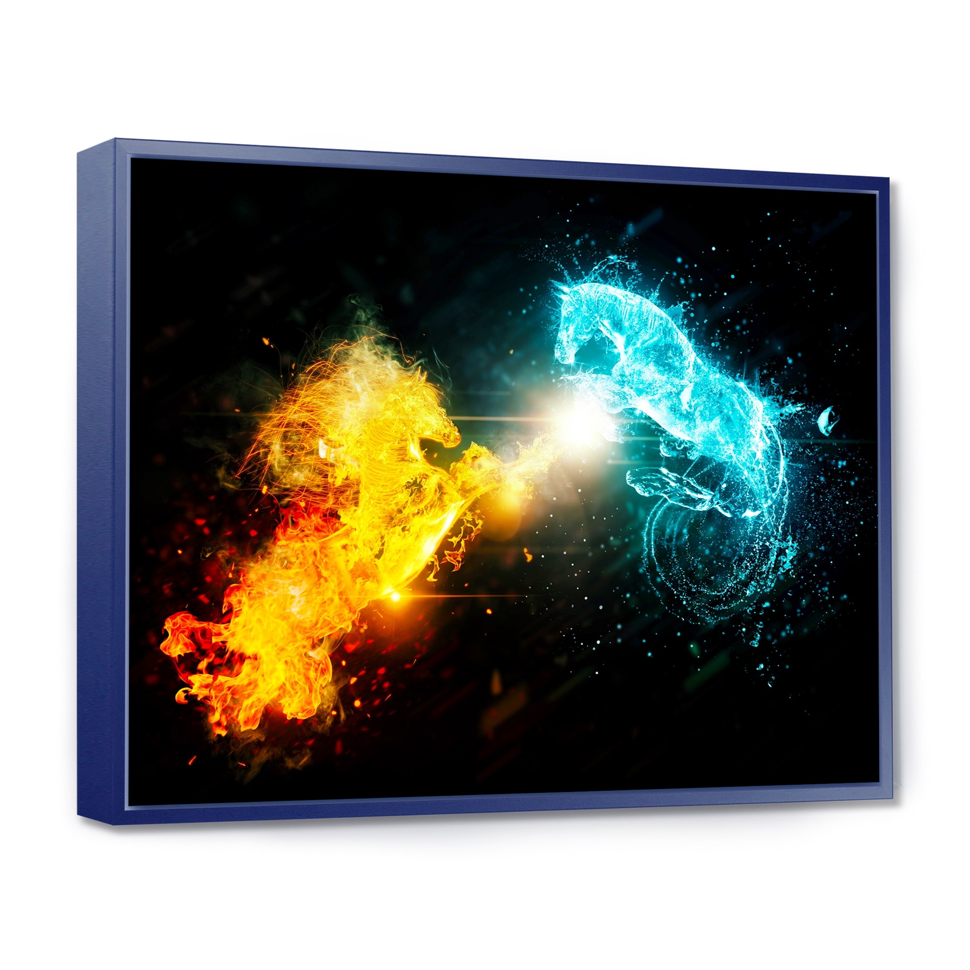 Designart "Fire and Water Abstract Horses" Animal Framed Canvas Art Print