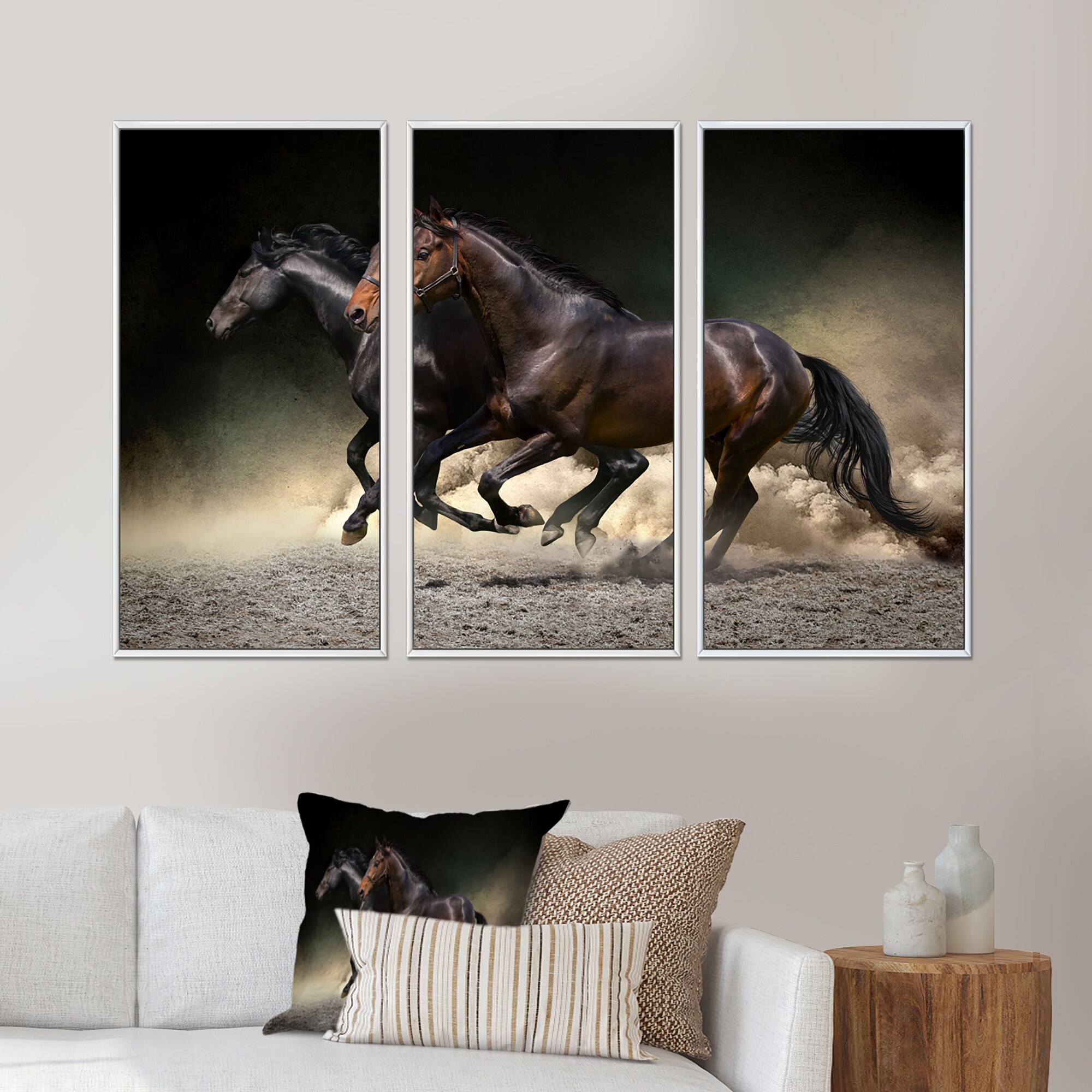 Designart "Horses Running III" Animals Framed Canvas Art Print