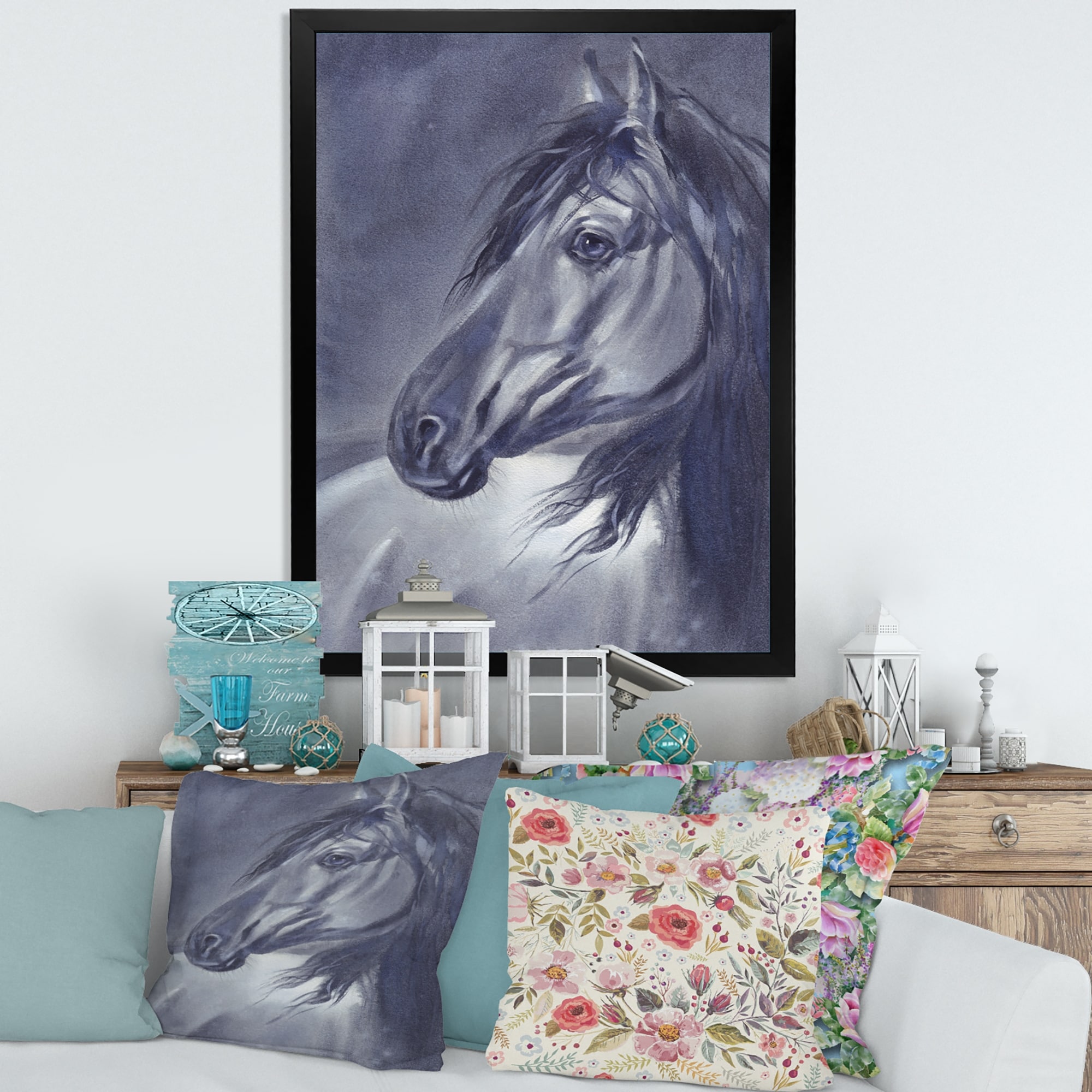 Designart "Portrait of Black Kladruby Horse" Farmhouse Framed Art Print