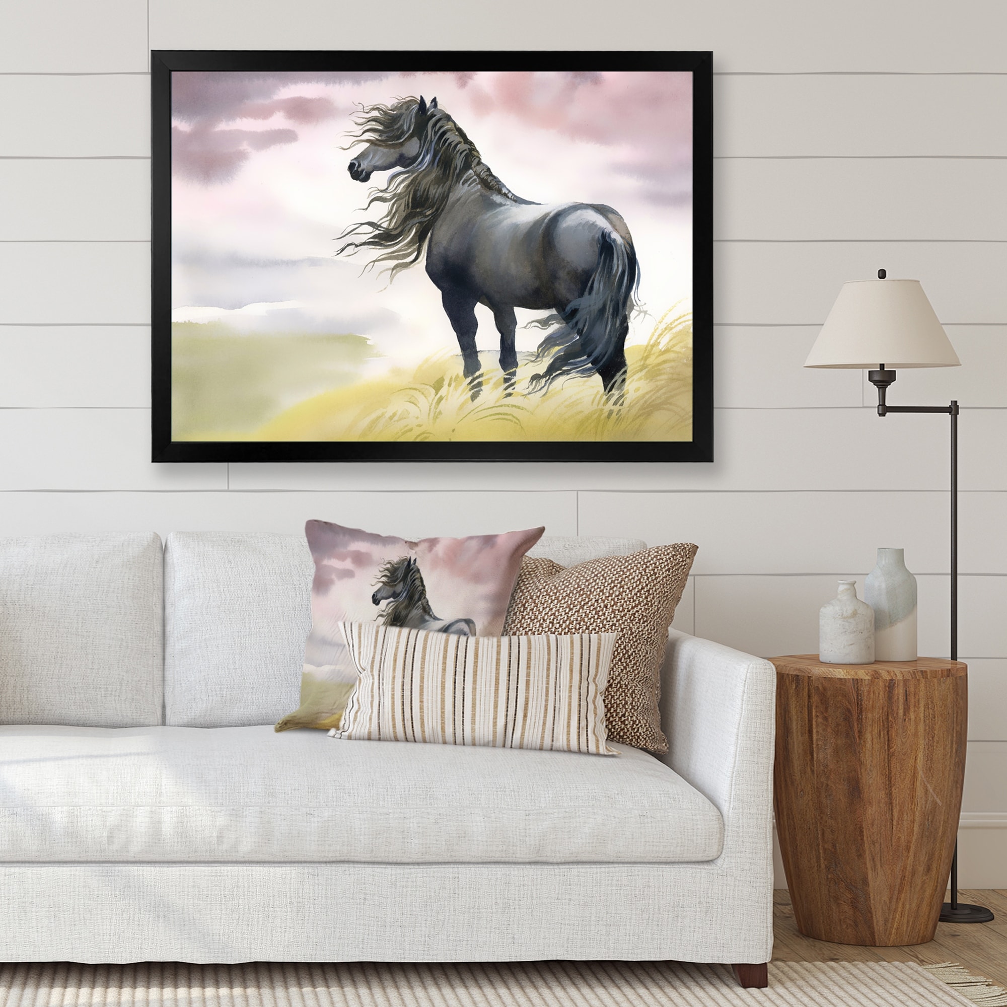 Designart "Black Horse in A Field" Traditional Framed Art Print