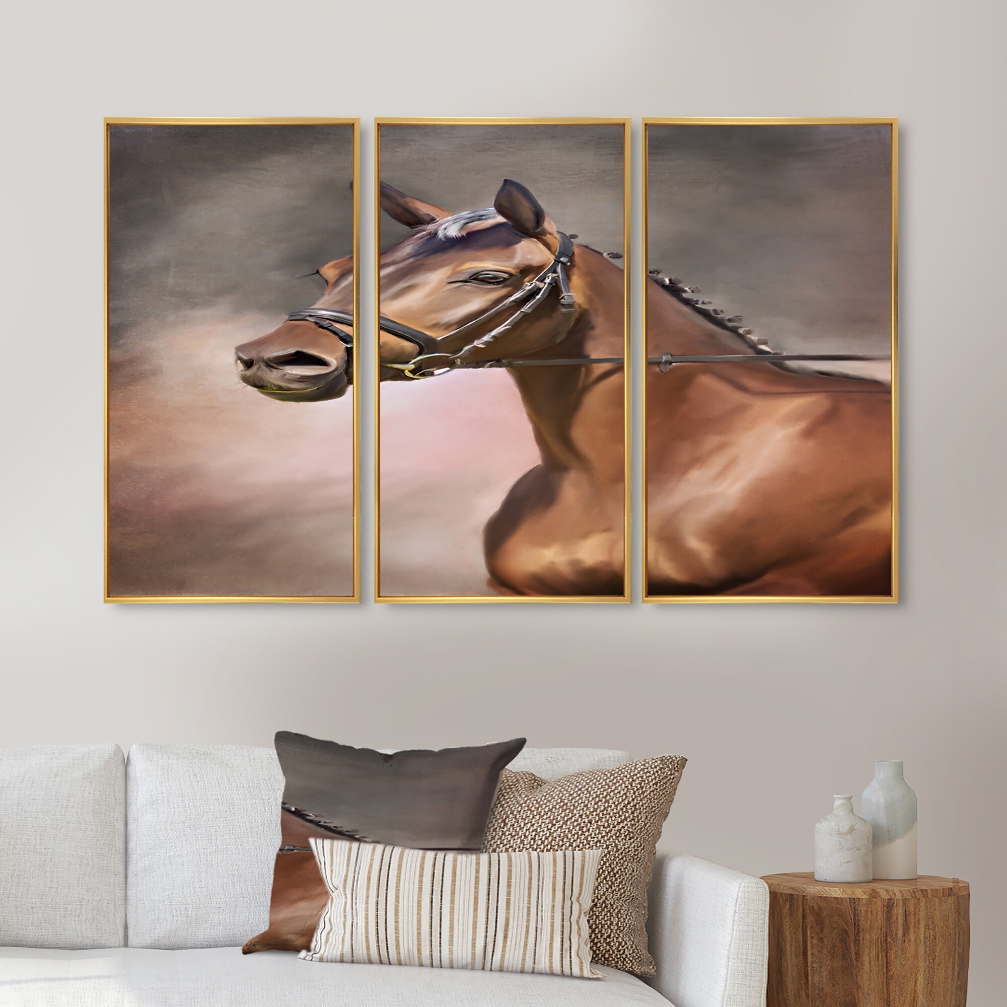 Designart "Portrait Of a Brown Horse I" Traditional Framed Art Prints Set of 3 - 4 Colors of Frames