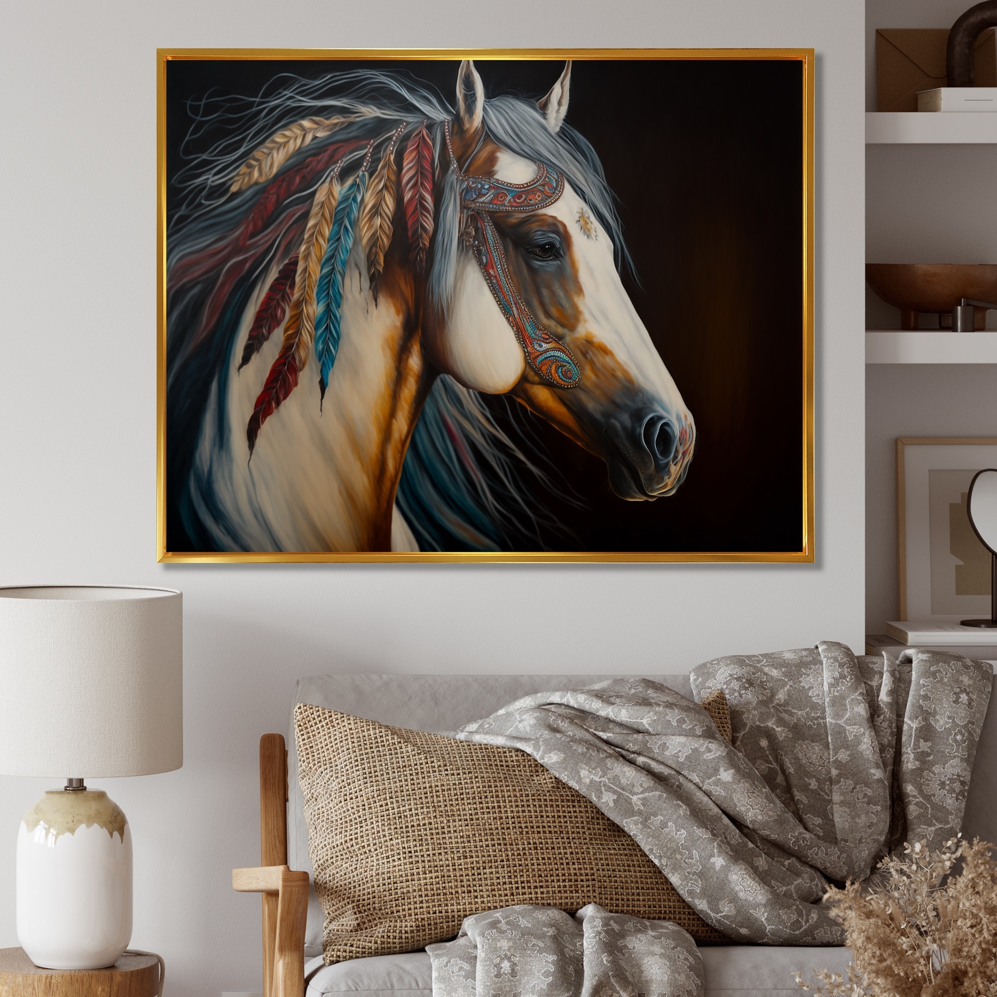 Designart "Colorful Native American Horse III" Modern Framed Canvas Art Print
