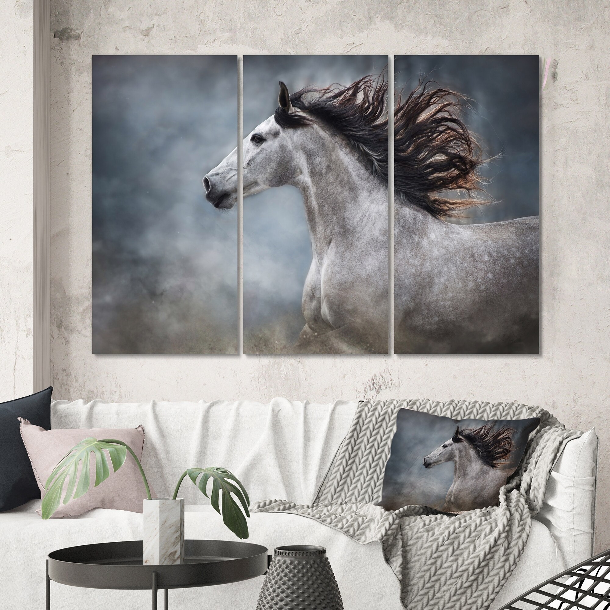 Designart "Portrait Of a Galloping White Horse II" Traditional Canvas Wall Art Print
