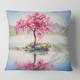 Designart 'Oriental Cherry Tree Sakura on the Lake' Lake House Printed Throw Pillow