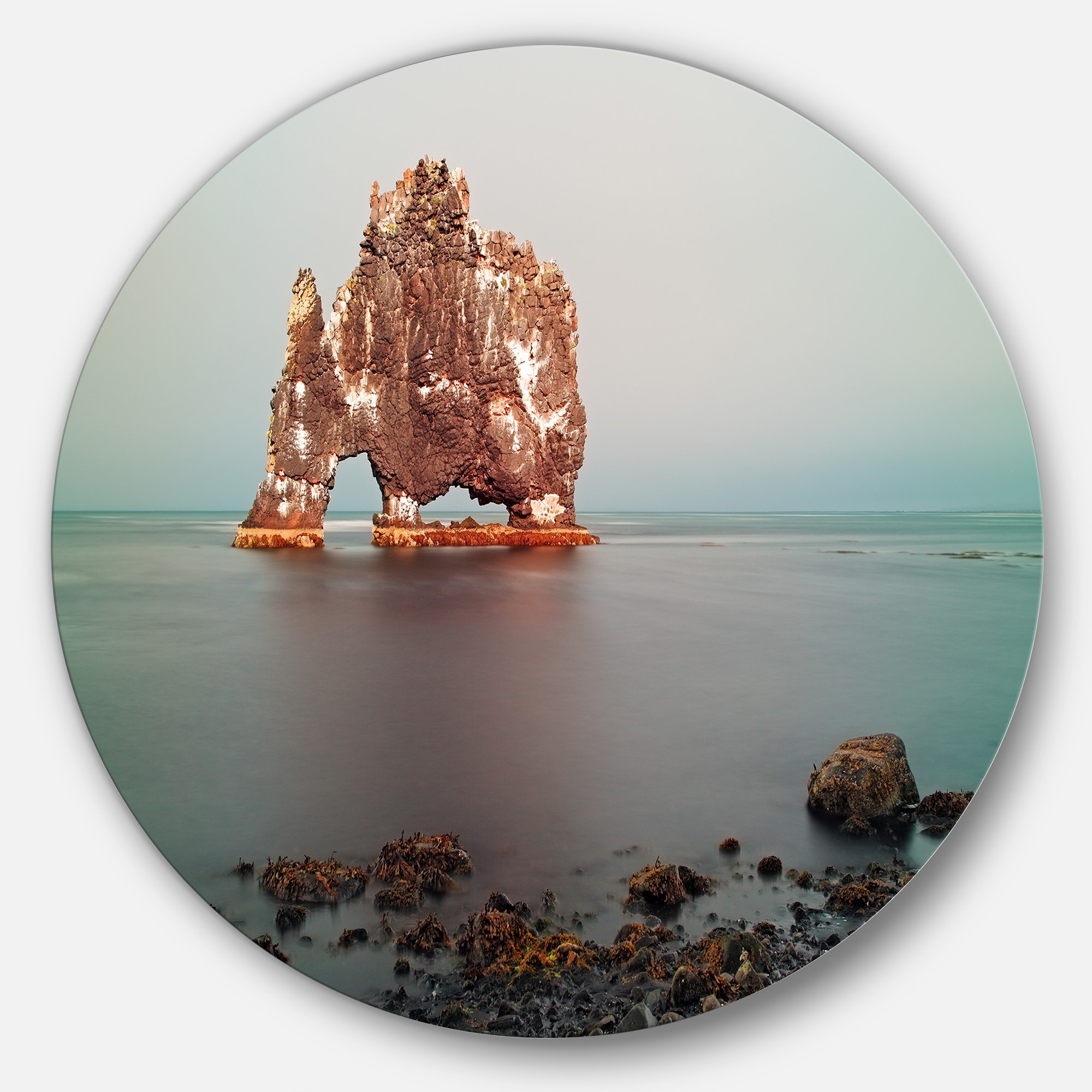 Designart 'Rock Sea Symbol in Iceland' Seashore Disc Metal Wall Art