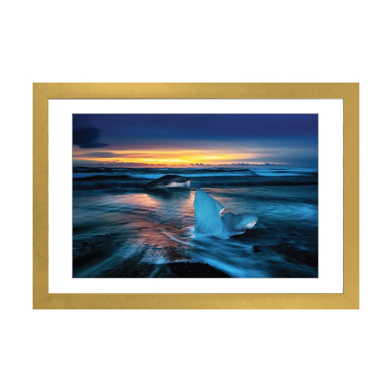 iCanvas "Iceland, Floating Glaciers Form Blue Ice Sculptures in Jokulsarlon." by Mark Williford Framed