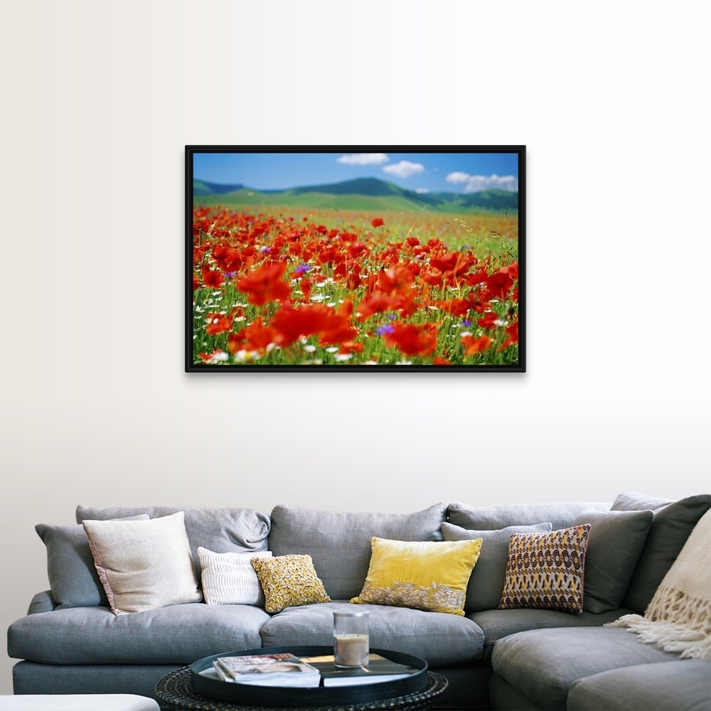"Italy, Umbria, Monti Sibillini National Park, Castellucchio, Flowering meadow" Black Float Frame Canvas Art
