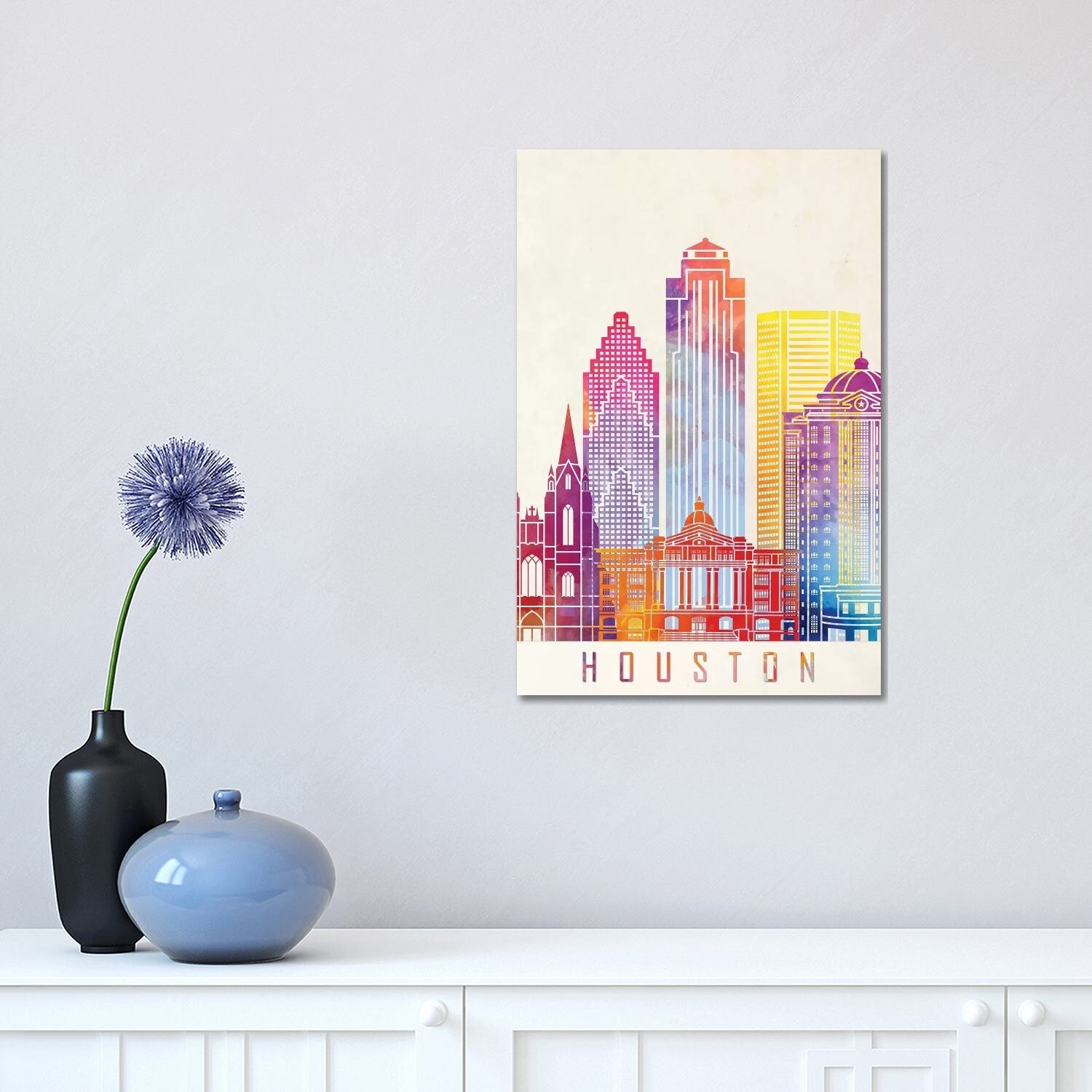 iCanvas "Houston Landmarks Watercolor Poster Vertical" by Paul Rommer Canvas Print