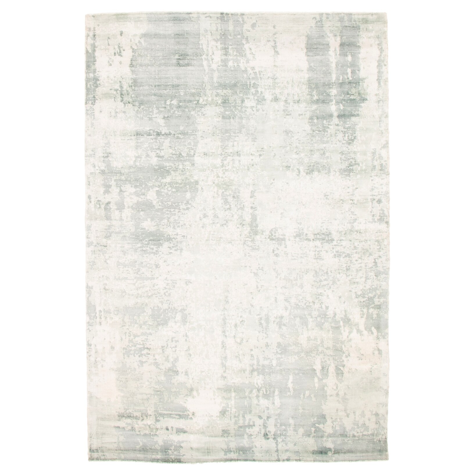 Hand Knotted Loom Silk Mix 6'x9' Area Rug Contemporary Blue Light Blue