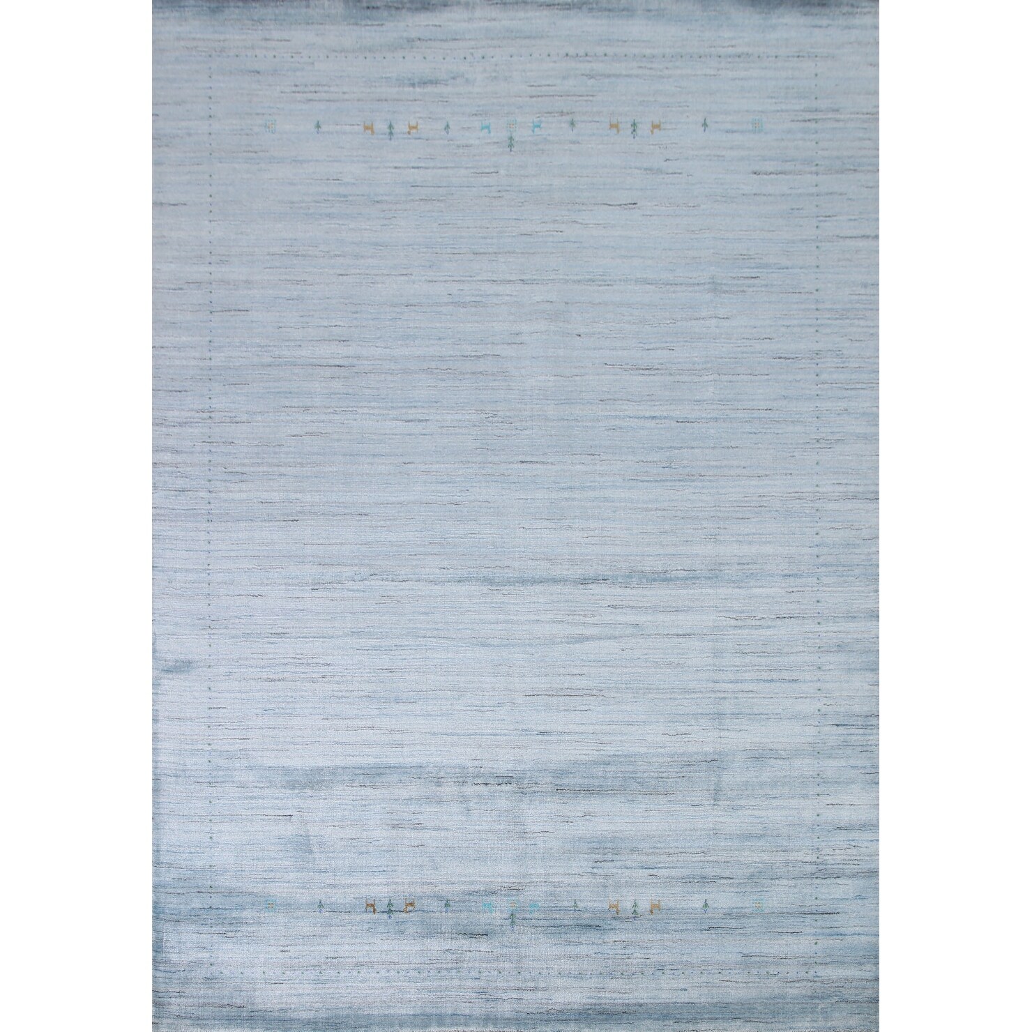 Light Blue Modern Gabbeh Oriental Area Rug Handmade Wool Carpet - 8'1" x 9'9"