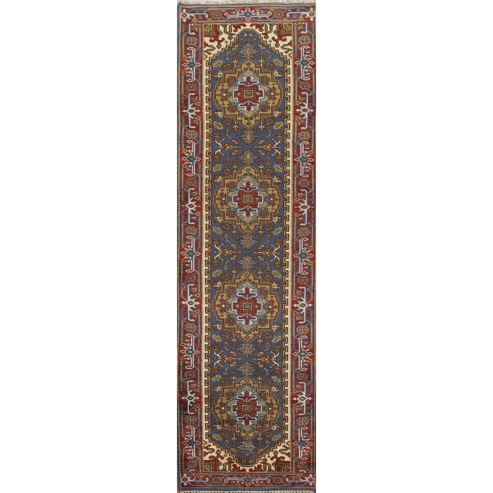 Light Blue Geometric Heriz Serapi Runner Rug Hand-knotted Wool Carpet - 2'7" x 9'11"