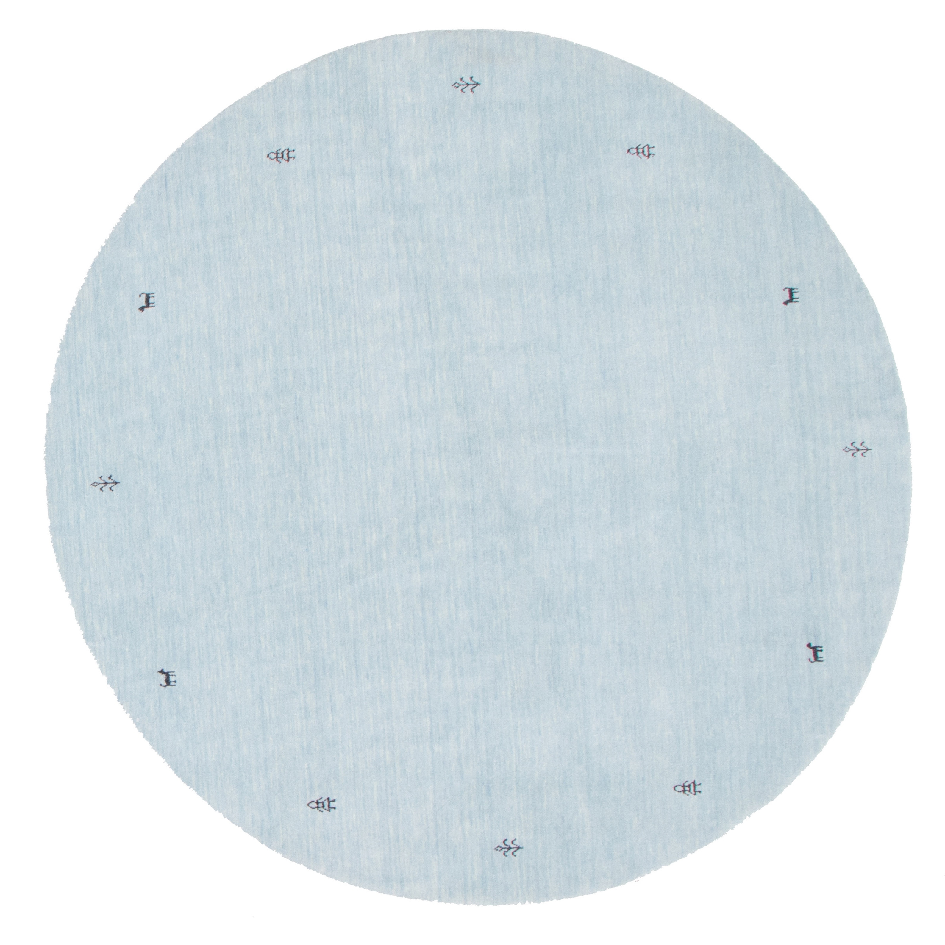 Shahbanu Rugs Light Blue, Densely Woven Wool and Silk Hand Knotted, Modern Grass Design Gabbeh, Round Oriental Rug (6'0" x 6'0")