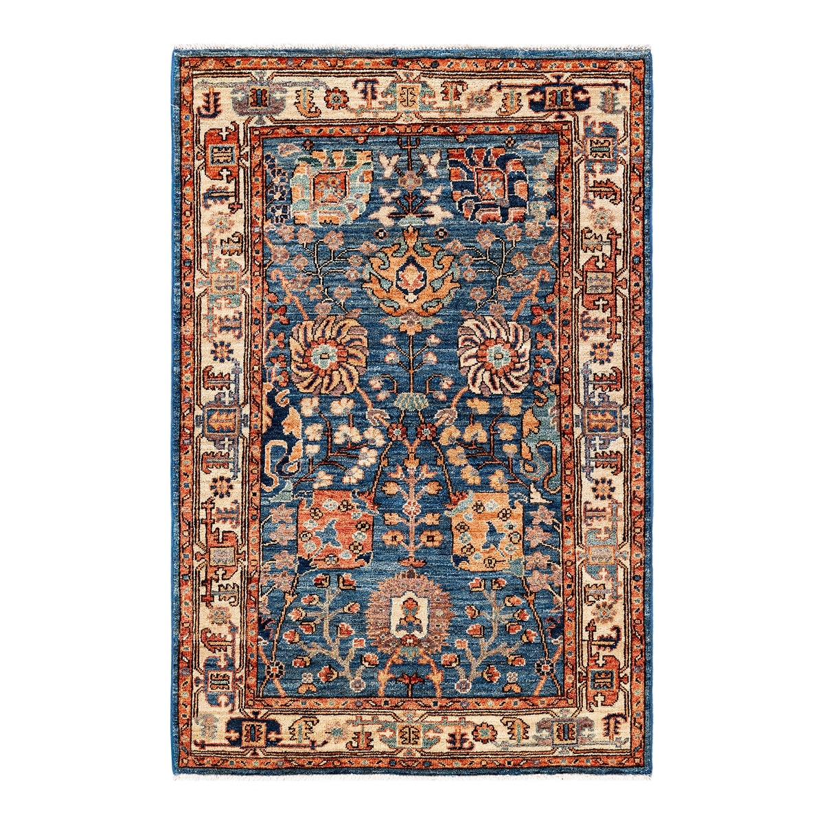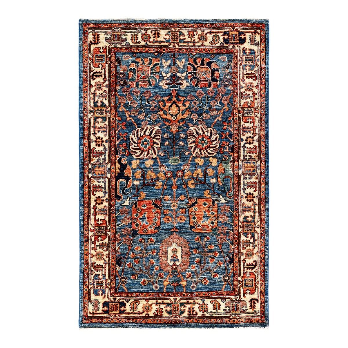 Hand Knotted Traditional Tribal Wool Light Blue Area Rug - 3' 1" x 5' 1"