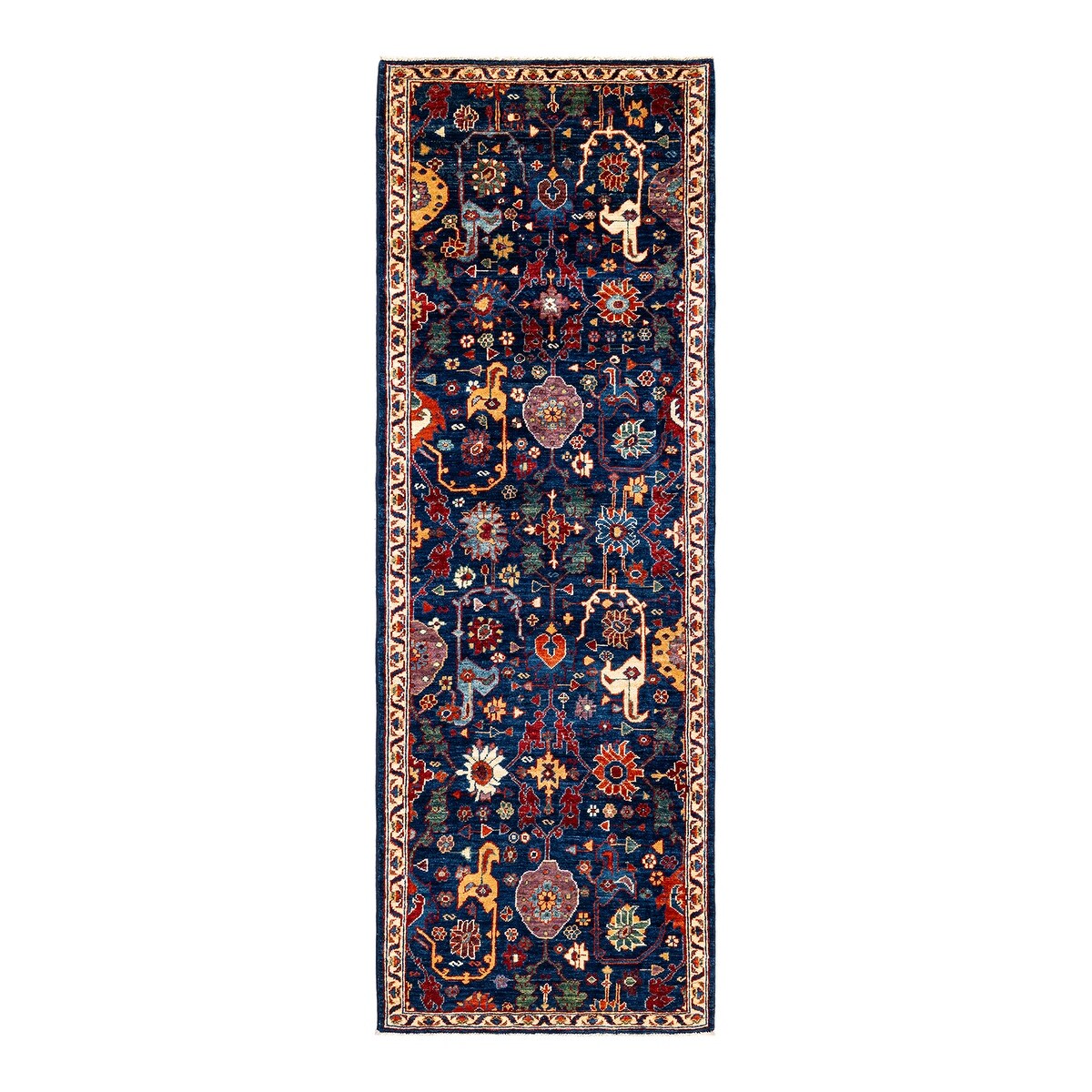 Hand Knotted Traditional Tribal Wool Light Blue Area Rug - 2' 9" x 6' 1"