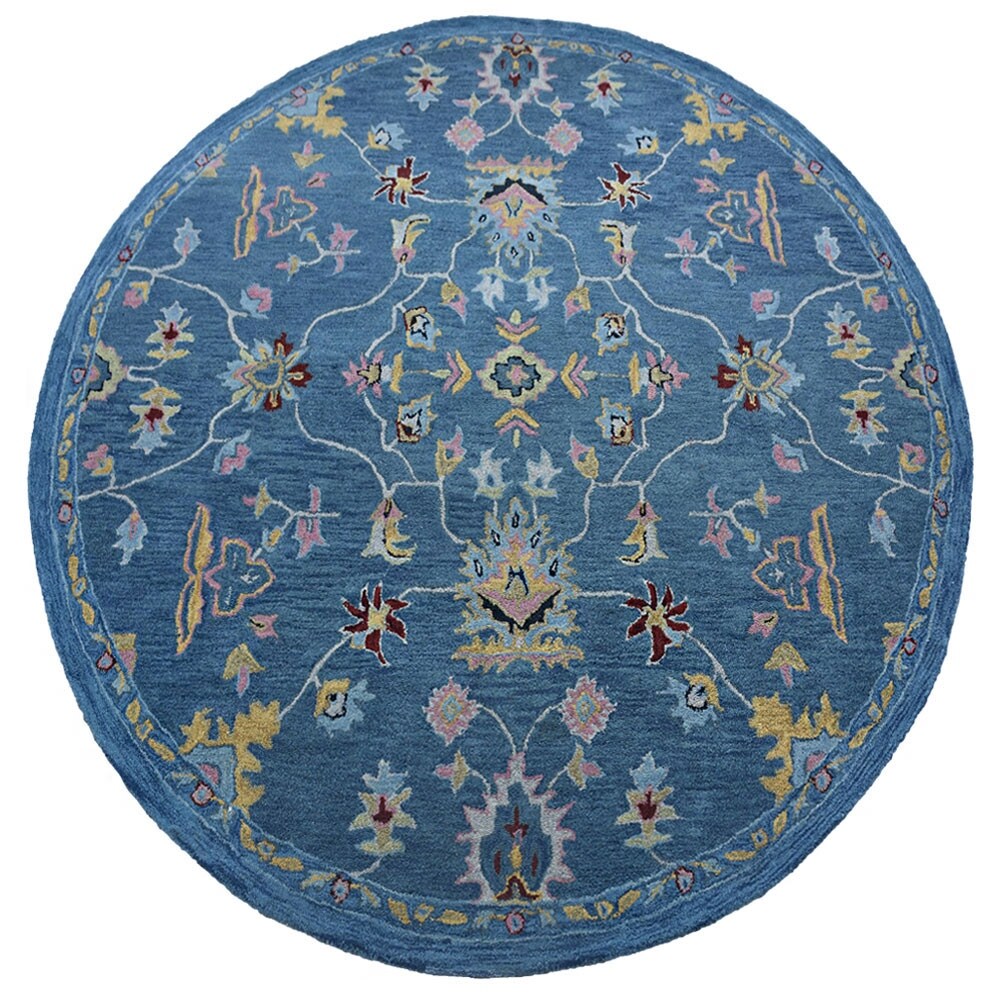 Hand Tufted Wool RoundArea Rug Floral Light Blue K00400