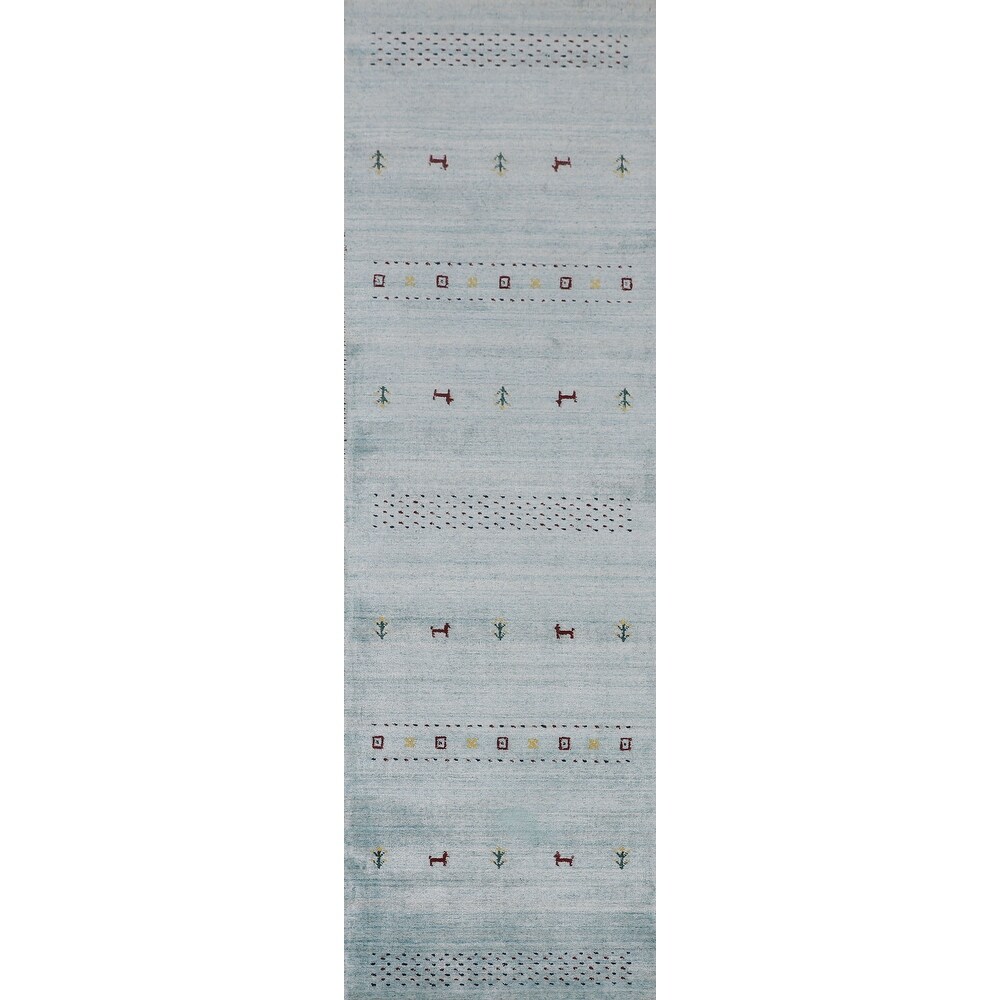 Light Blue Gabbeh Runner Rug Handmade Tribal Wool Carpet - 2'4"x 9'10"