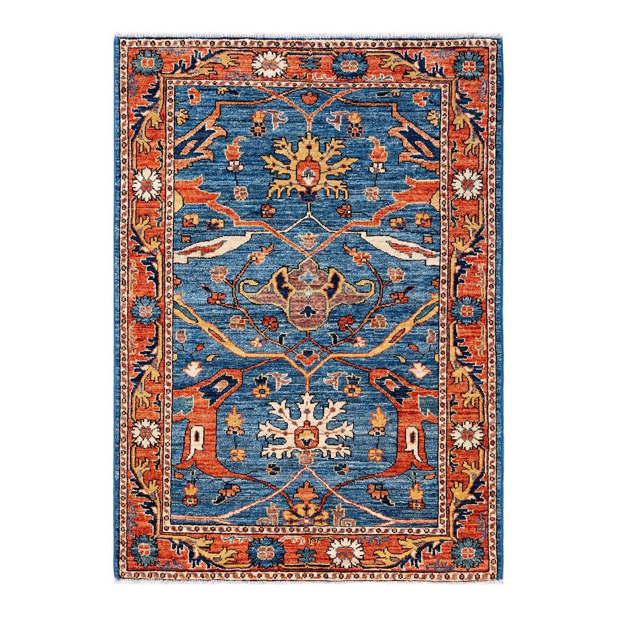 Hand Knotted Traditional Tribal Wool Light Blue Area Rug - 3' 3" x 4' 11"