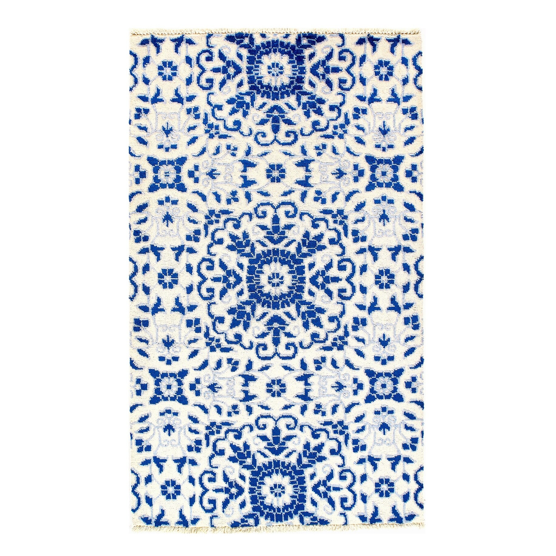 Hand Knotted Loom Wool 3'x5' Area Rug Contemporary Blue Light Blue