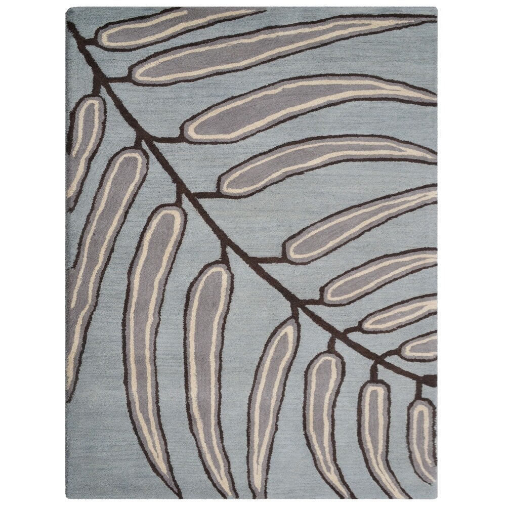 Hand Tufted Wool 8'x11' Area Rug Floral Light Blue