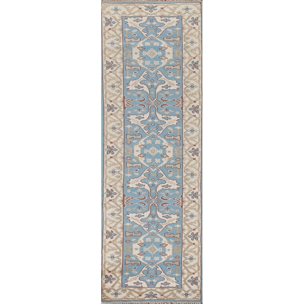 Light Blue Oushak Oriental Runner Rug Handmade Wool Carpet - 2'6"x 9'9"