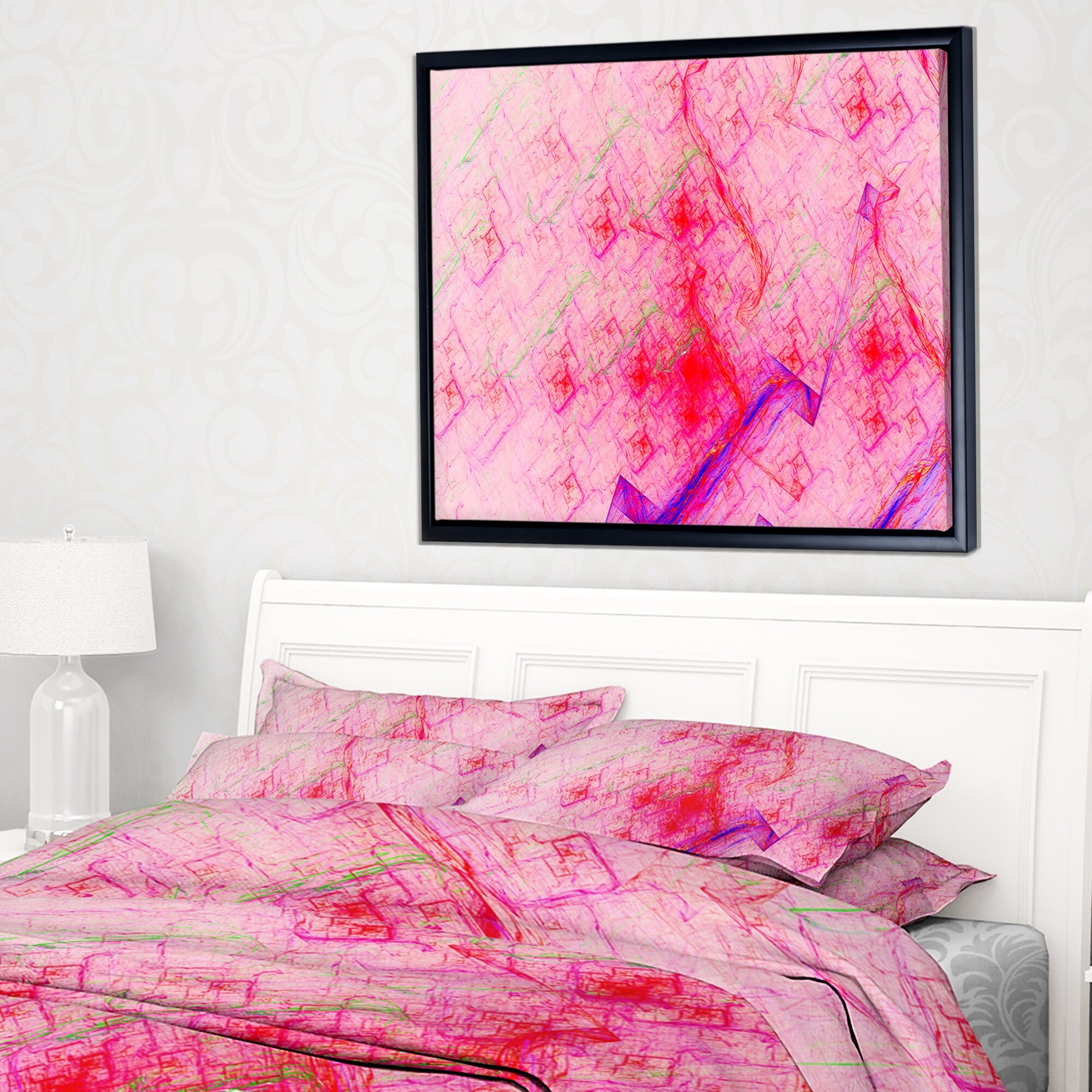 Designart "Pink Fractal Electric Lightning" Abstract Art on Framed Canvas