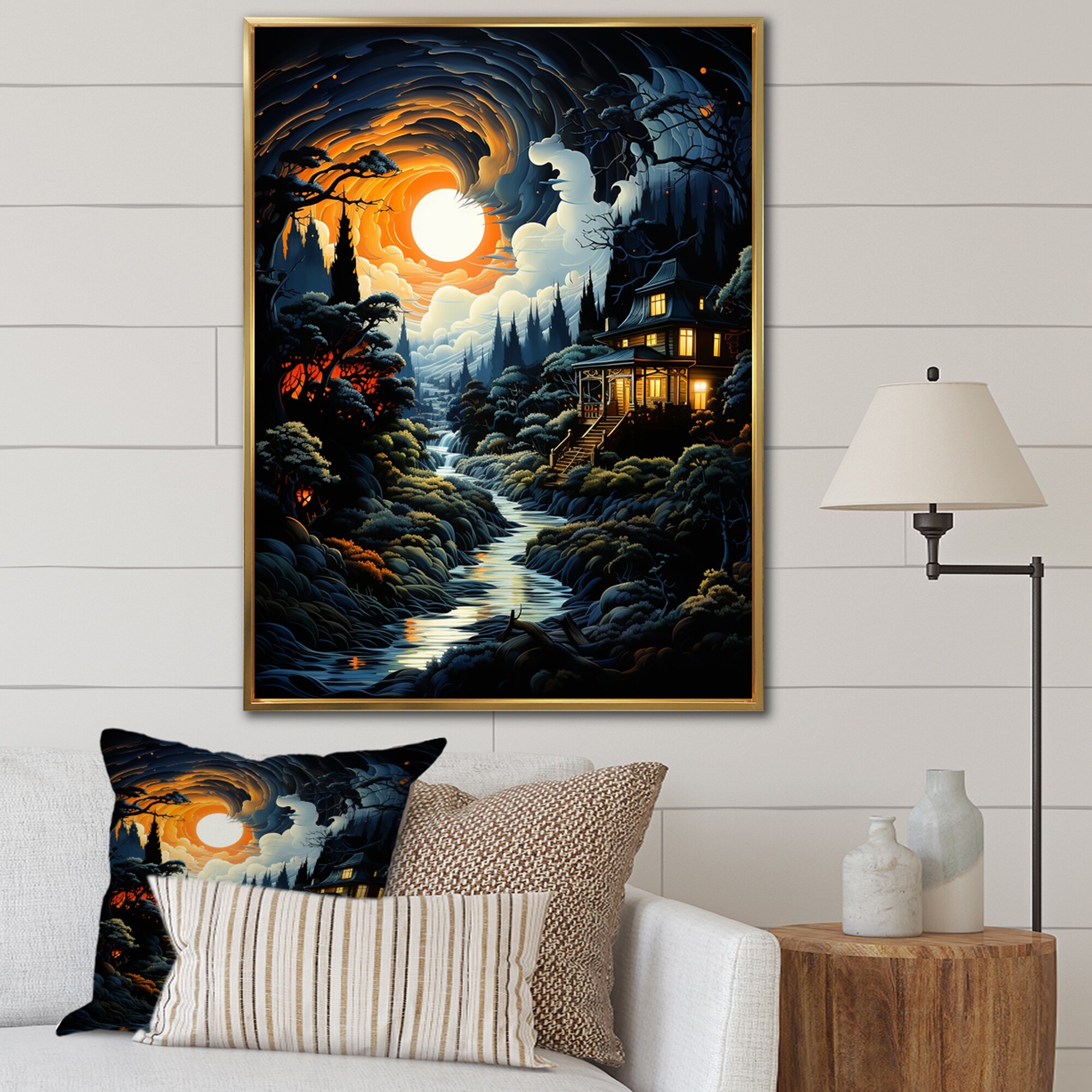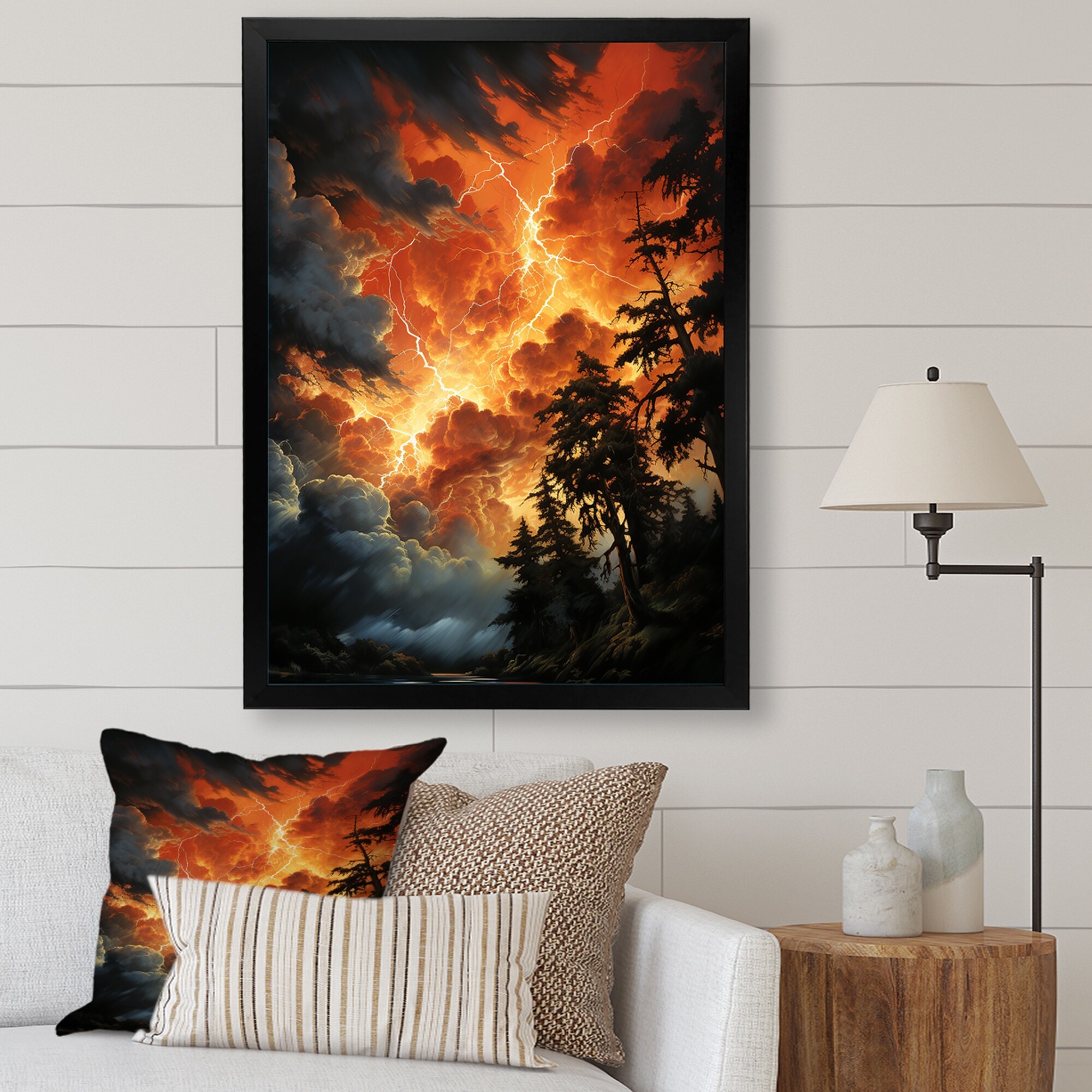 Designart "Lightning Fiery Streaks" Lightning Framed Wall Art Living Room