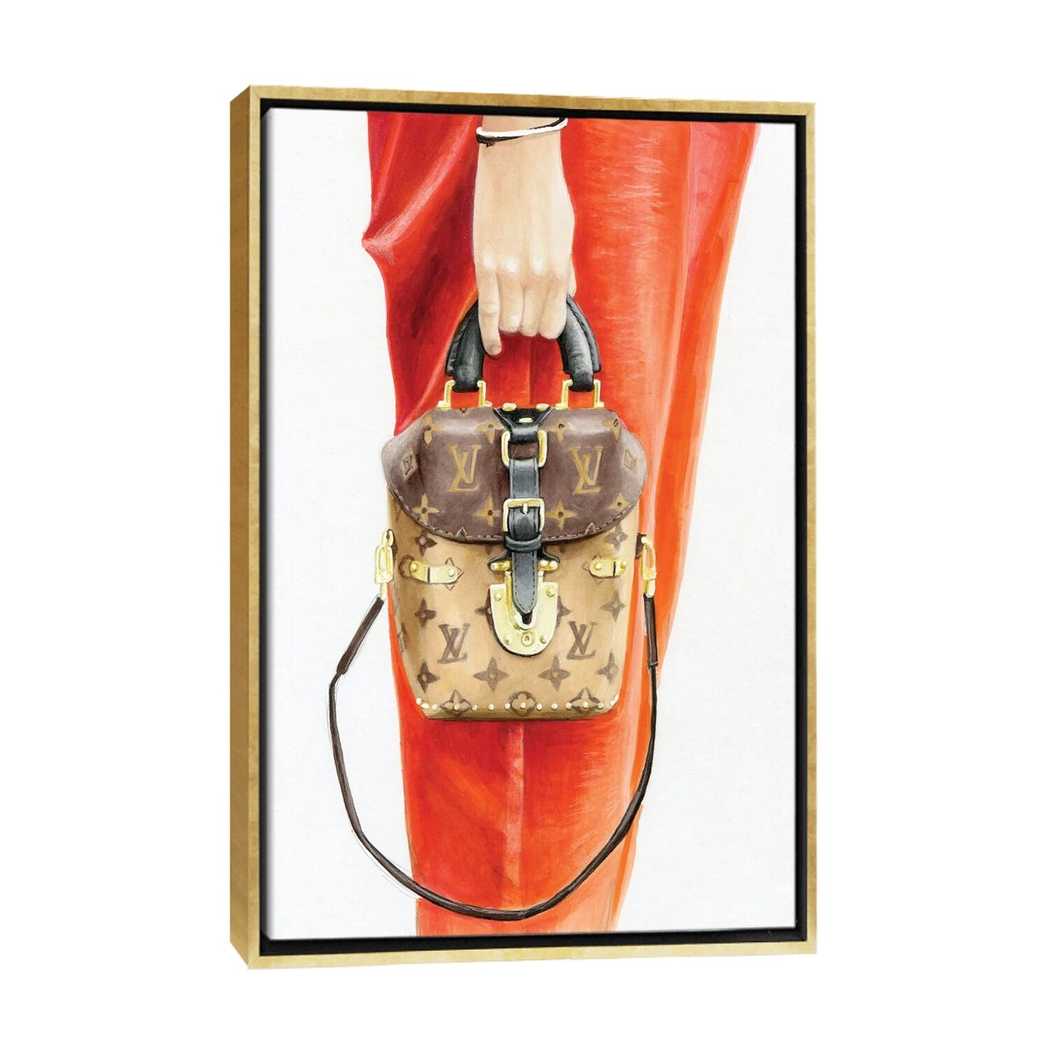 iCanvas "Louis Dark Brown & Black Checkered Shopping Bag With Roses" by Pomaikai Barron Framed Canvas Print