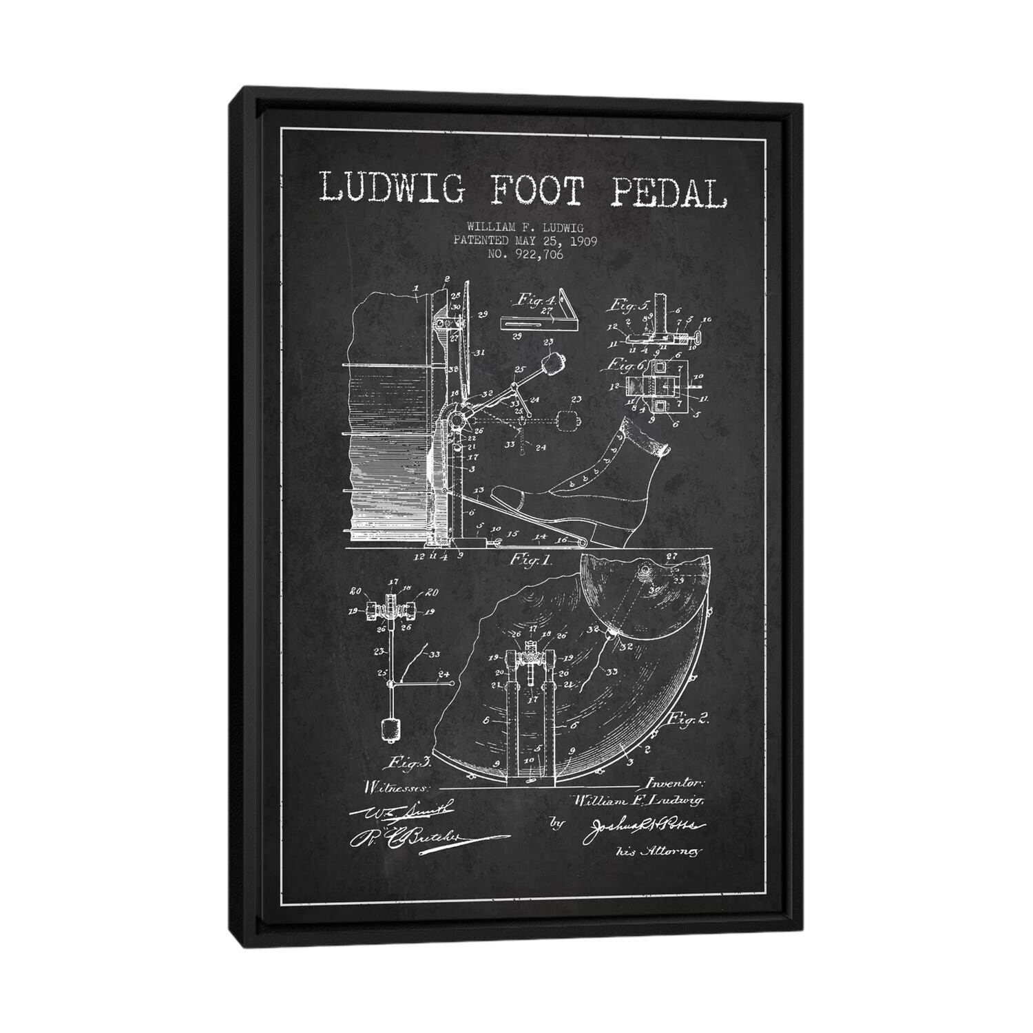 iCanvas "Ludwig Pedal Charcoal Patent Blueprint" by Aged Pixel Framed Canvas Print