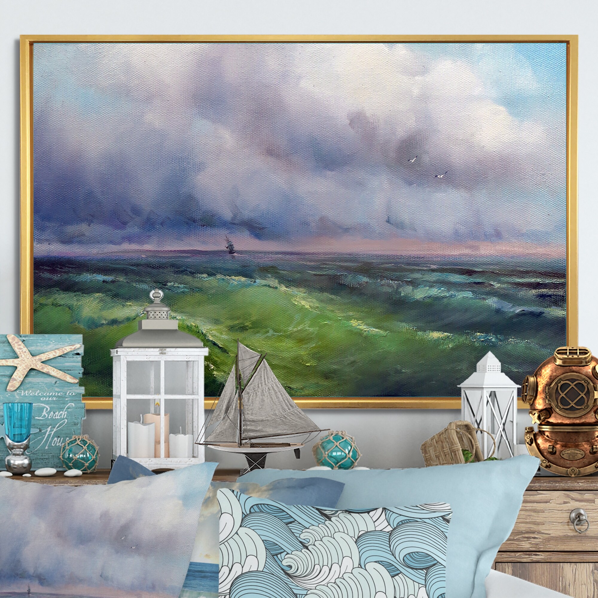 Designart "Magical Green Waves" Nautical & Coastal Framed Canvas Wall Art