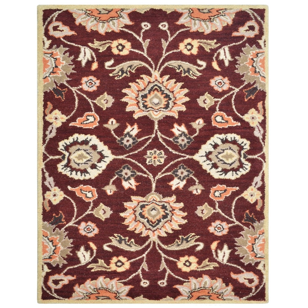 Hand Tufted Wool 6'x9' Area Rug Oriental Maroon