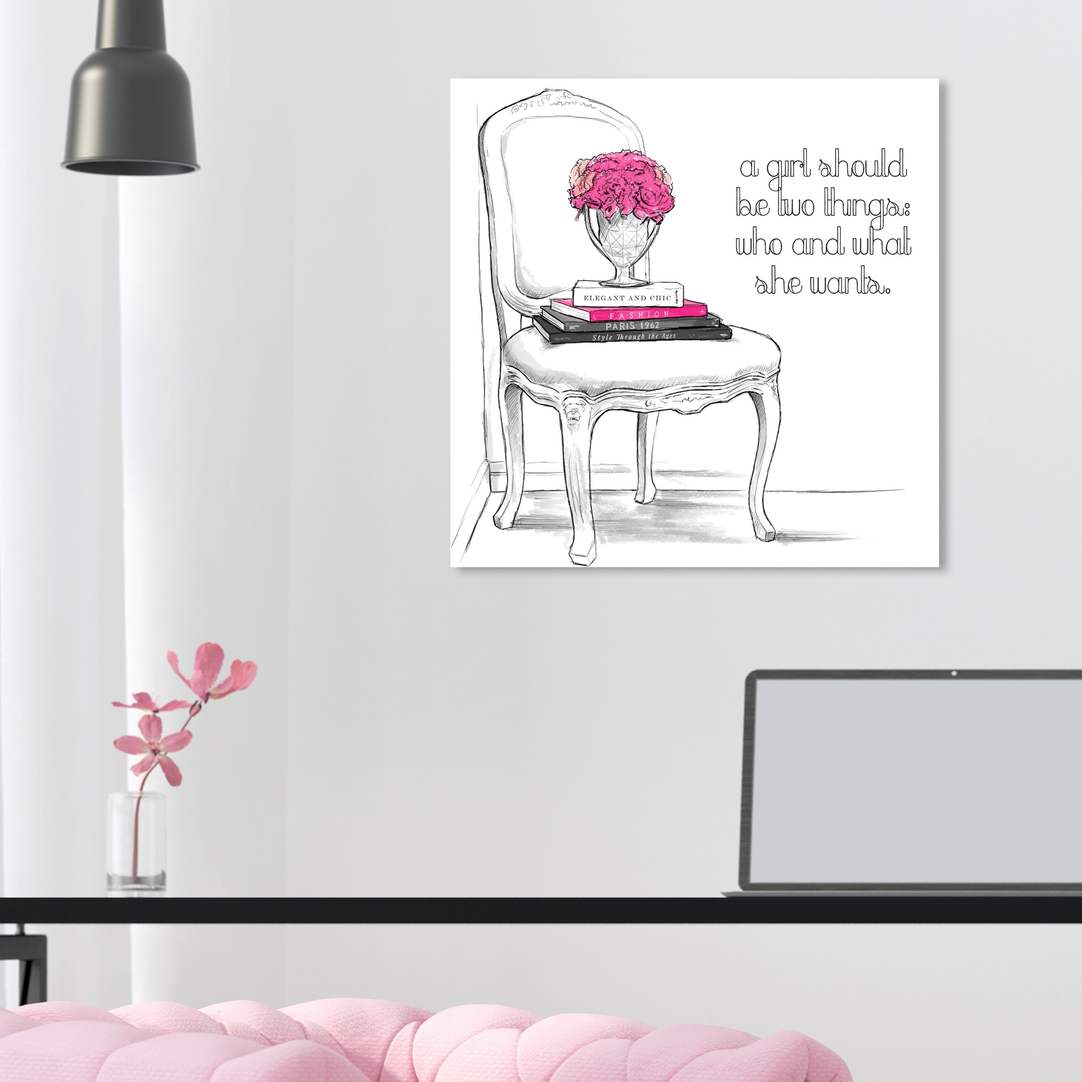 Oliver Gal Typography Wall Art Canvas Prints 'Who and What She Wants' Empowered Women Quotes and Sayings - White, Pink