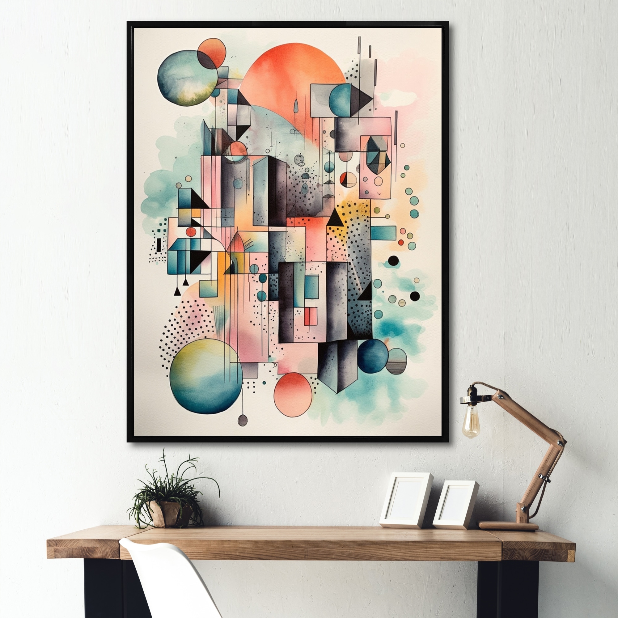 Designart "Abstracted Forms in Balance I" Modern Midcentury Framed Wall Art Prints