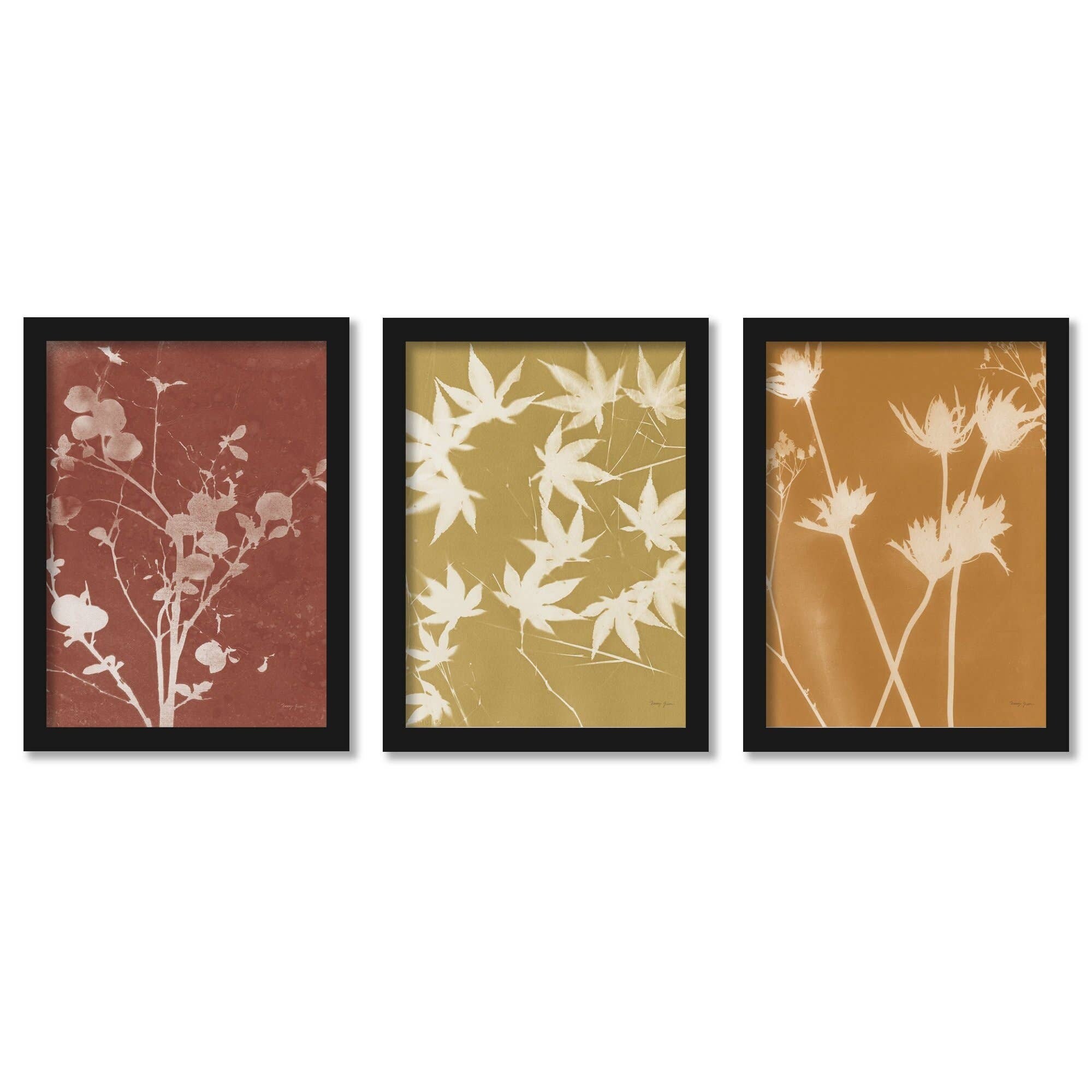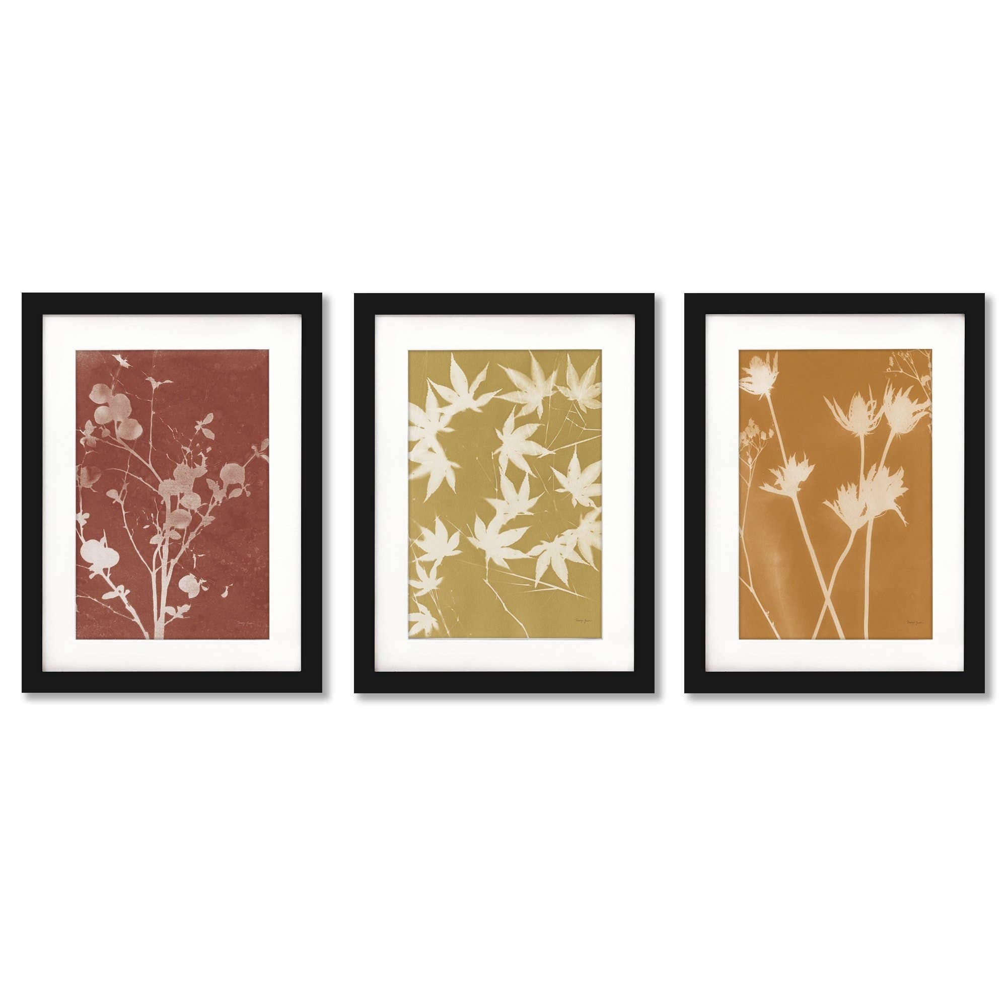 Fall Cyanotype Nancy Green Contemporary 2 - 3 Piece Framed Gallery Art Set