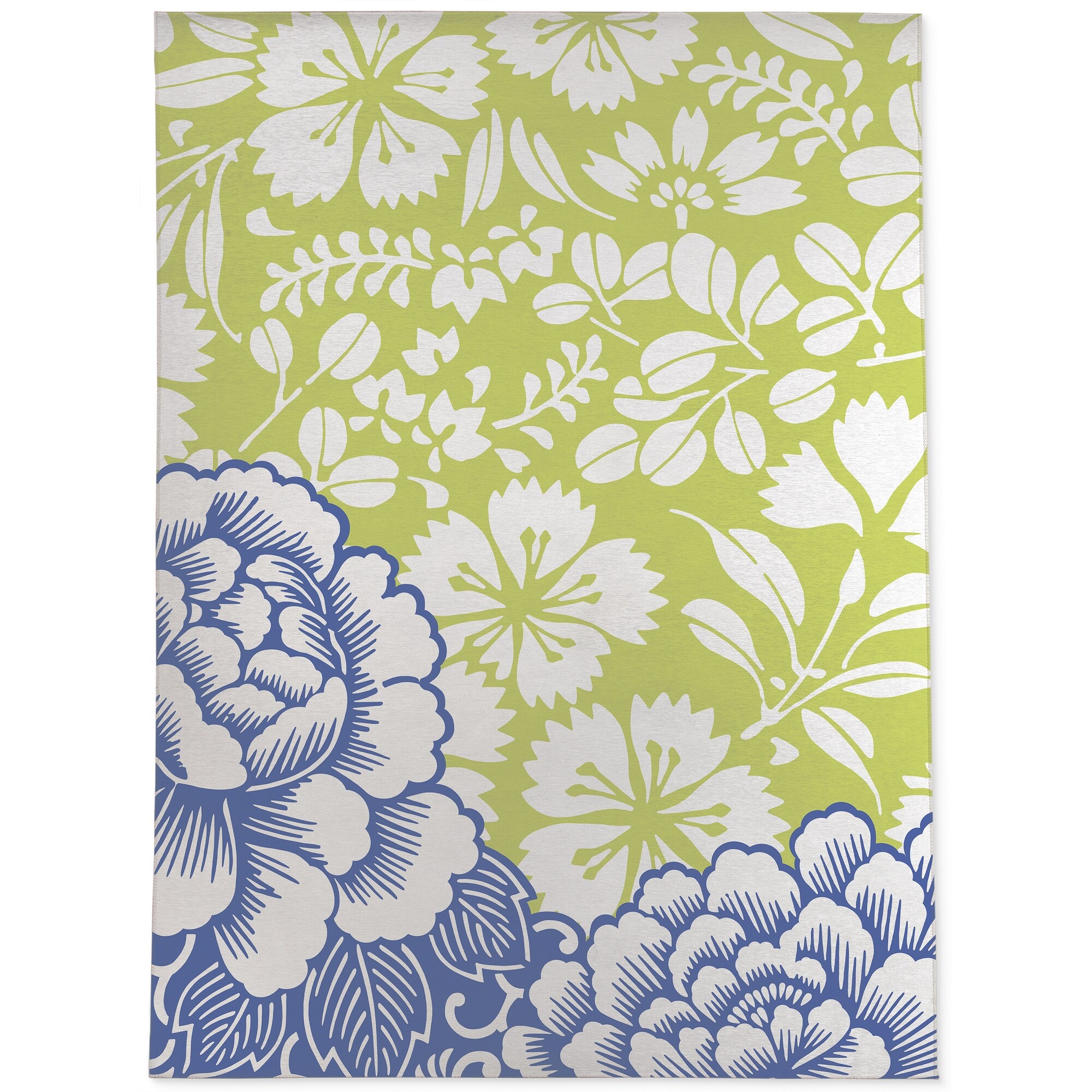 PASTICHE FLORAL GREEN & BLUE Outdoor Rug By Nancy Green