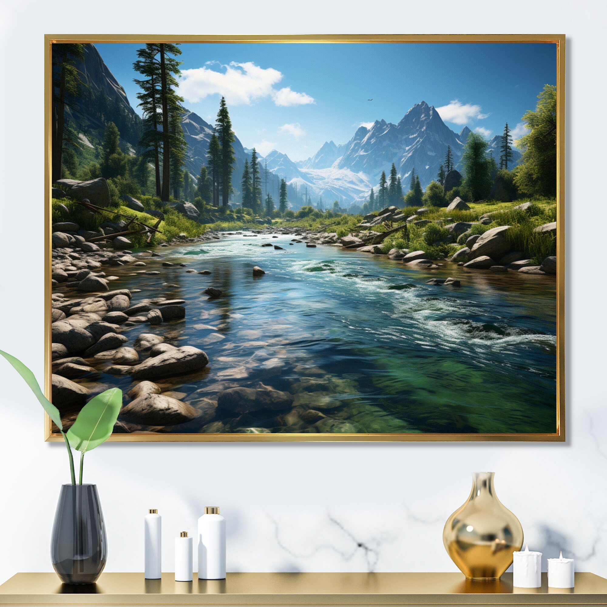 Designart "USA Olympic National Forest With River" USA Framed Wall Art Living Room