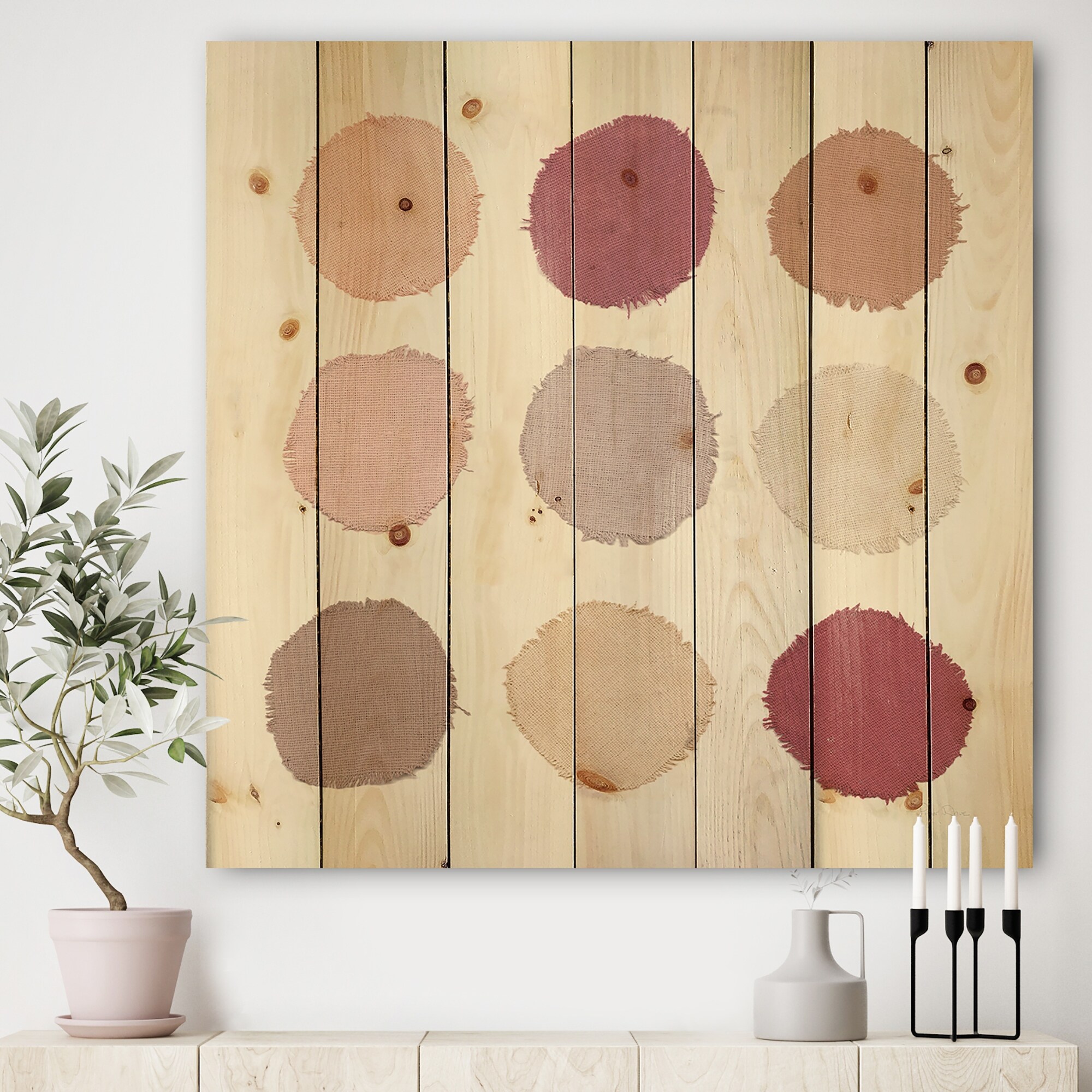 Designart 'Unique Beige Circle Designs' Modern Transitional Print on Natural Pine Wood - Multi-color