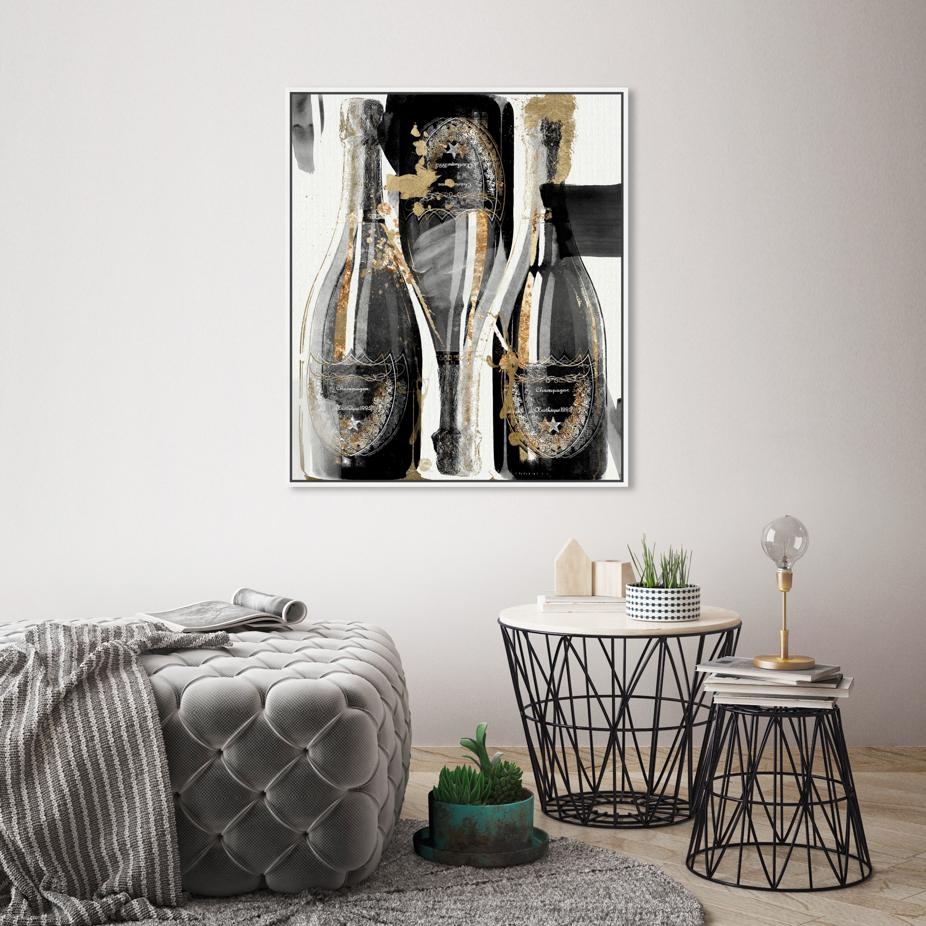 Oliver Gal 'Gold Showers Noir' Drinks and Spirits Wall Art Framed Canvas Print Champagne - Gold, Gray