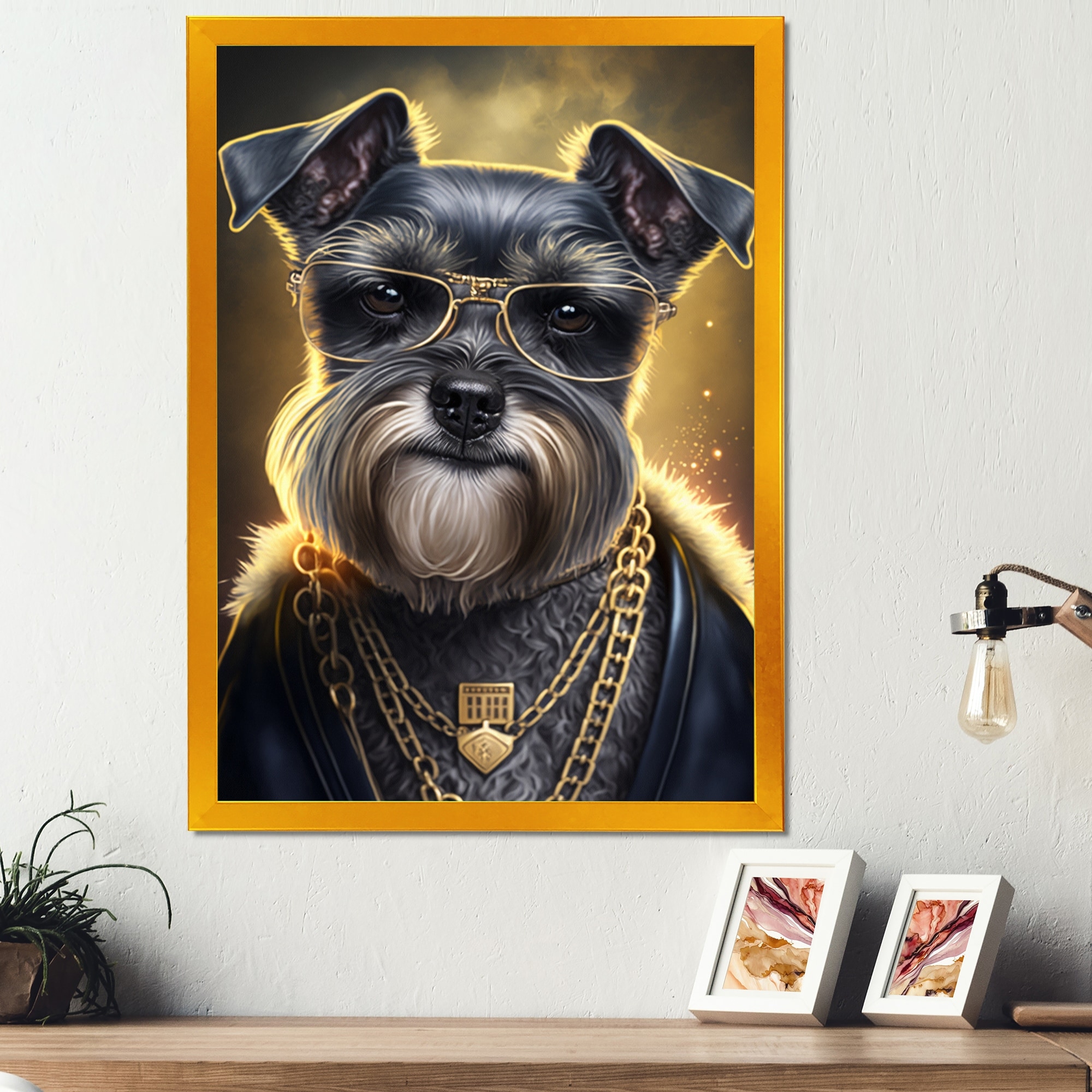 Designart "Schnauzer Gangster in NYC II" Animals Framed Art Print