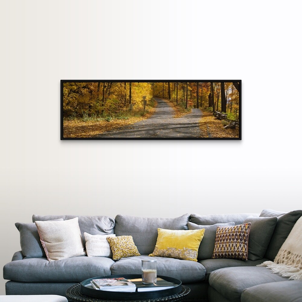 "Autumn leaves on the road, Connecticut" Black Float Frame Canvas Art