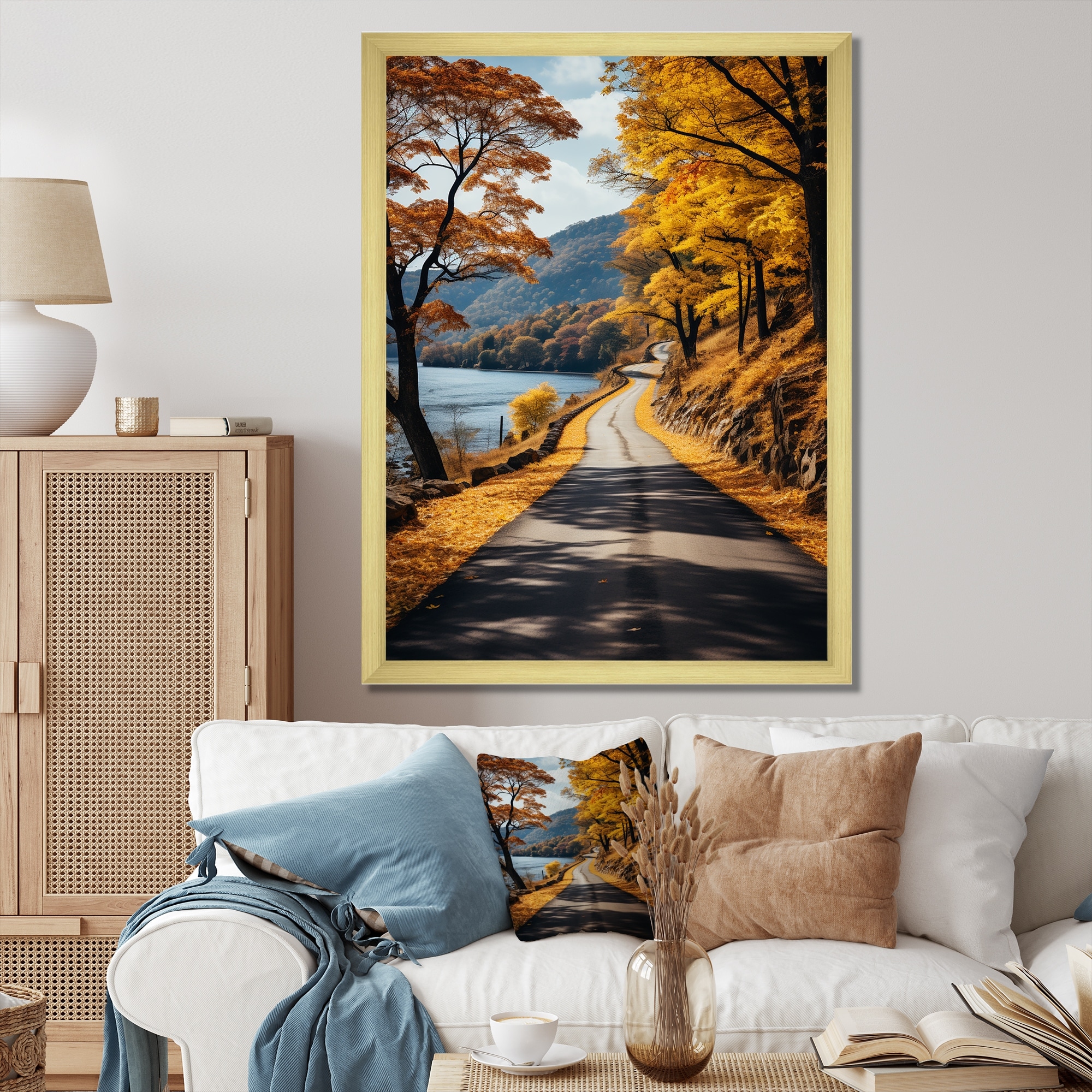 Designart "Road Through Yellow Forest IV" Road Framed Canvas Wall Art