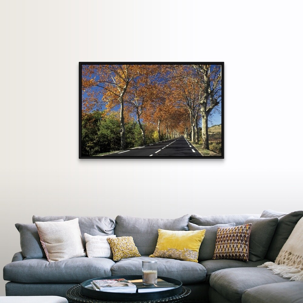 "Road in the Country w/Trees in Autumn" Black Float Frame Canvas Art