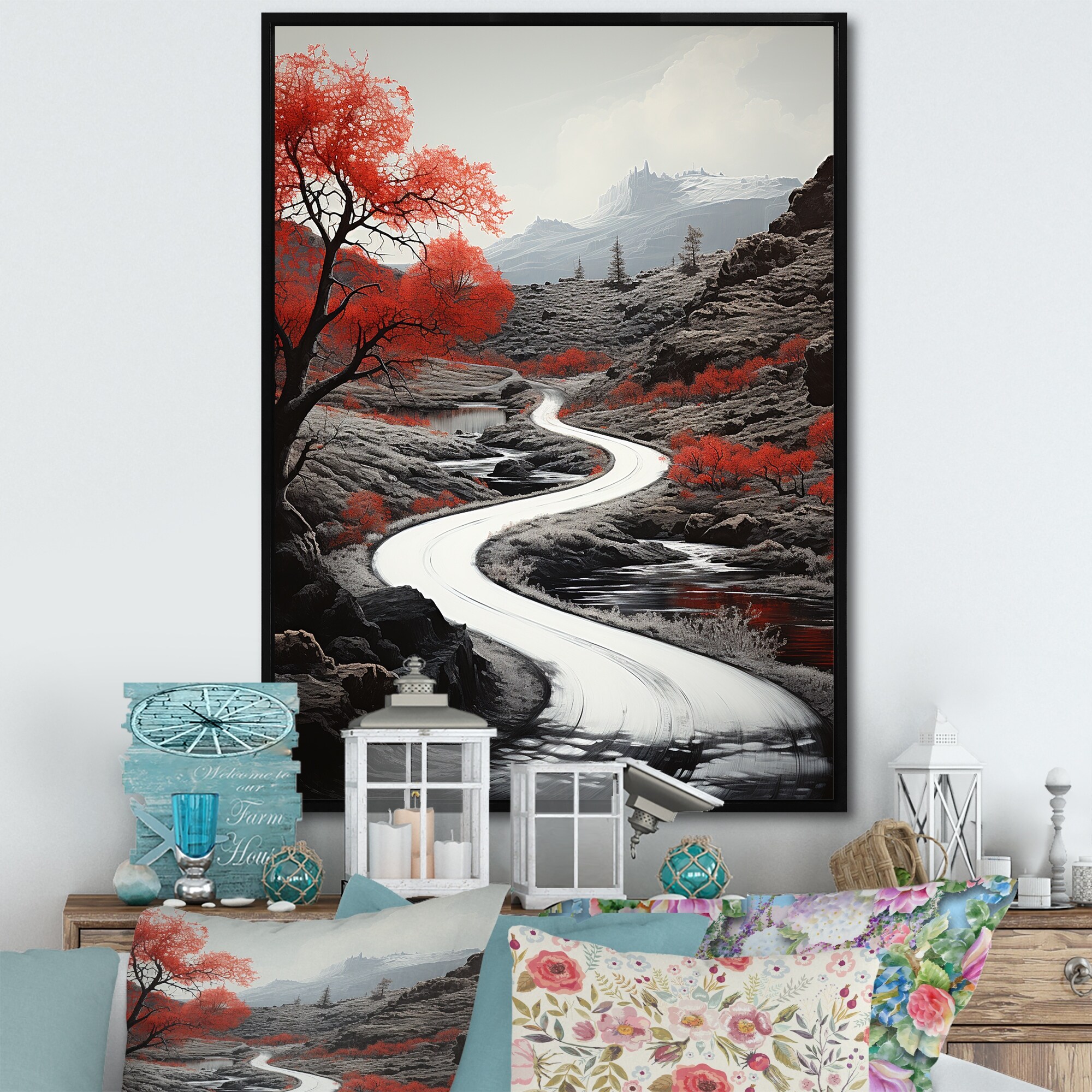 Designart "Meandering Road Endless Journey in Coral Forest II" Road Framed Wall Decor