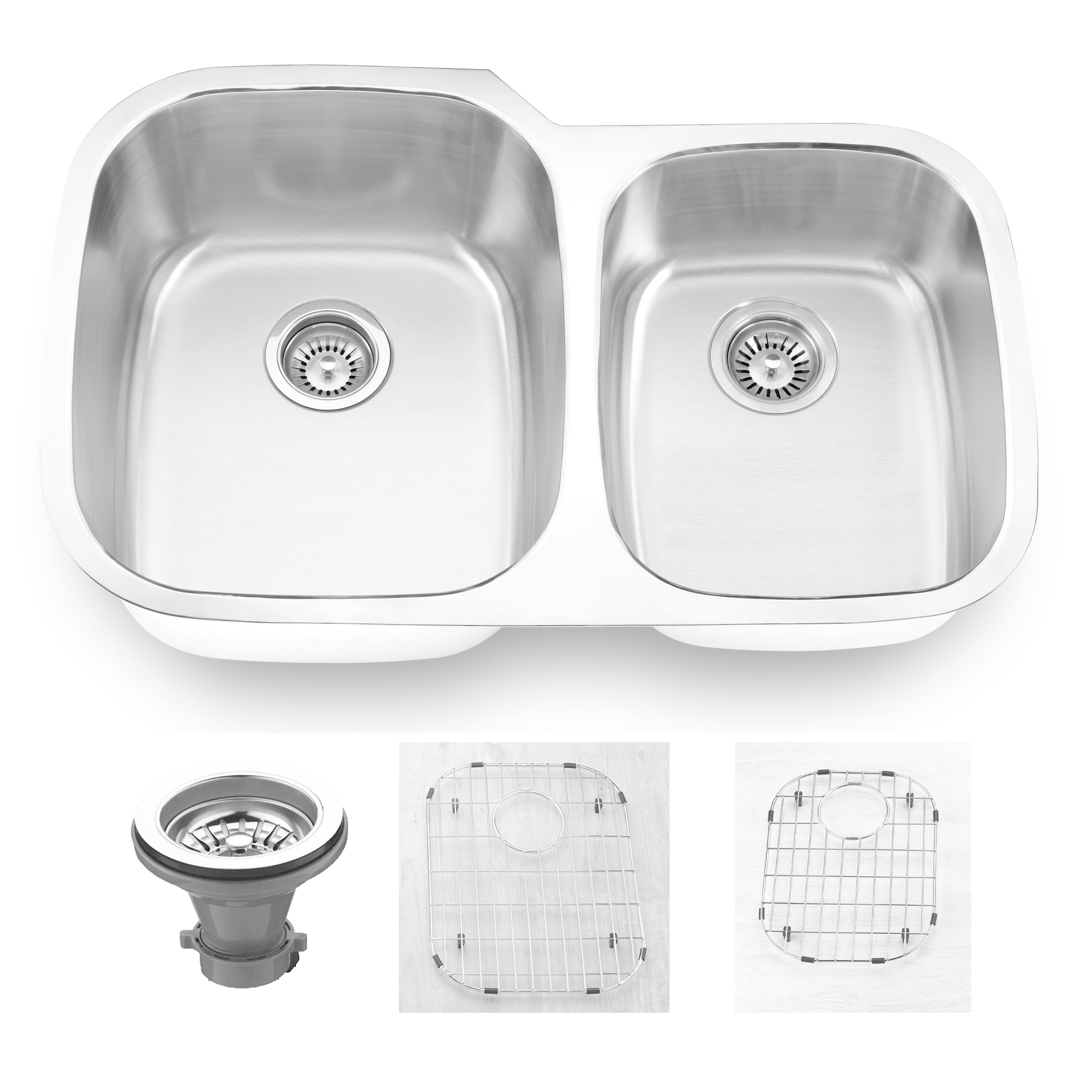 32 in. Undermount Double Bowl Stainless Steel Kitchen Sink with Bottom Grids