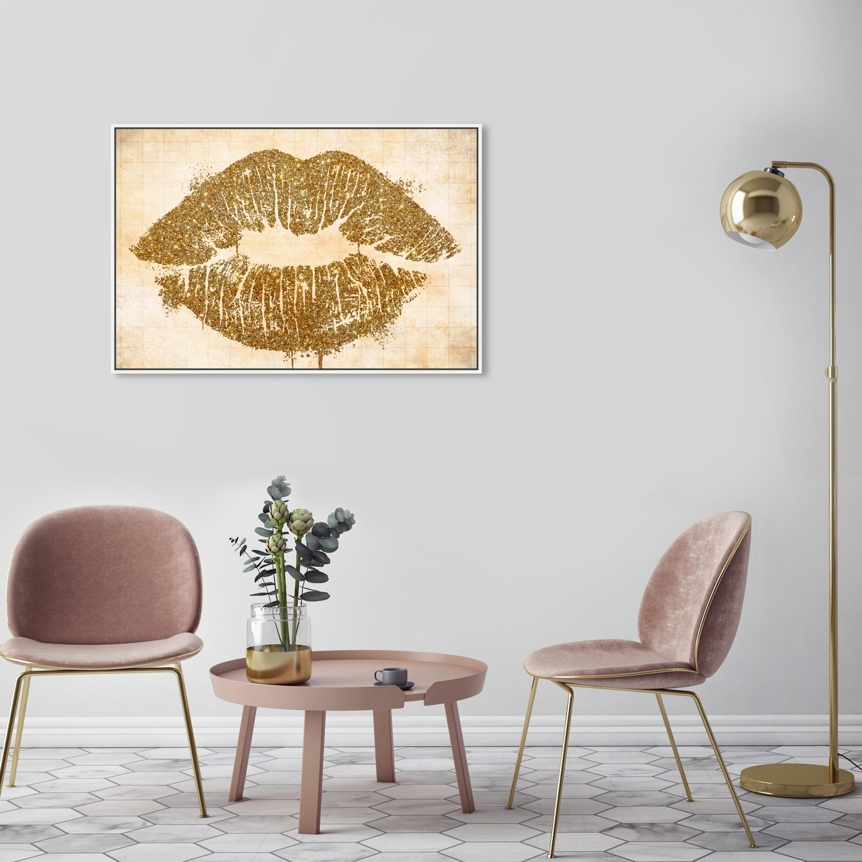 Oliver Gal 'Grid Splatter Kiss' Glam Gold Wall Art Canvas Print