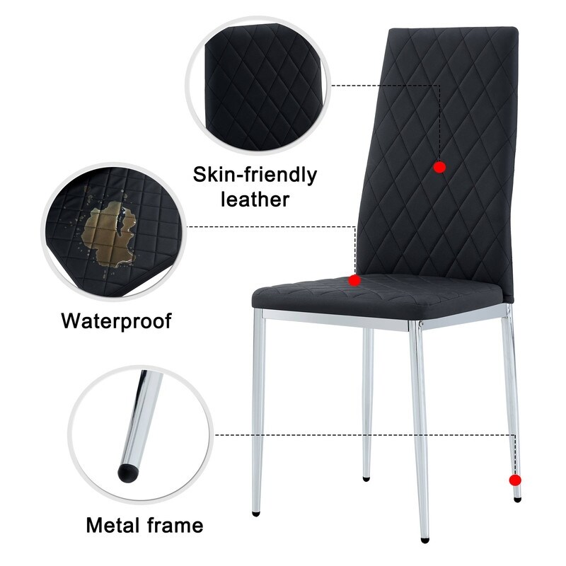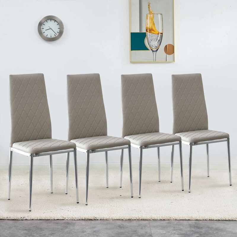 PU Leather dining chair with diamond grid pattern, set of 4