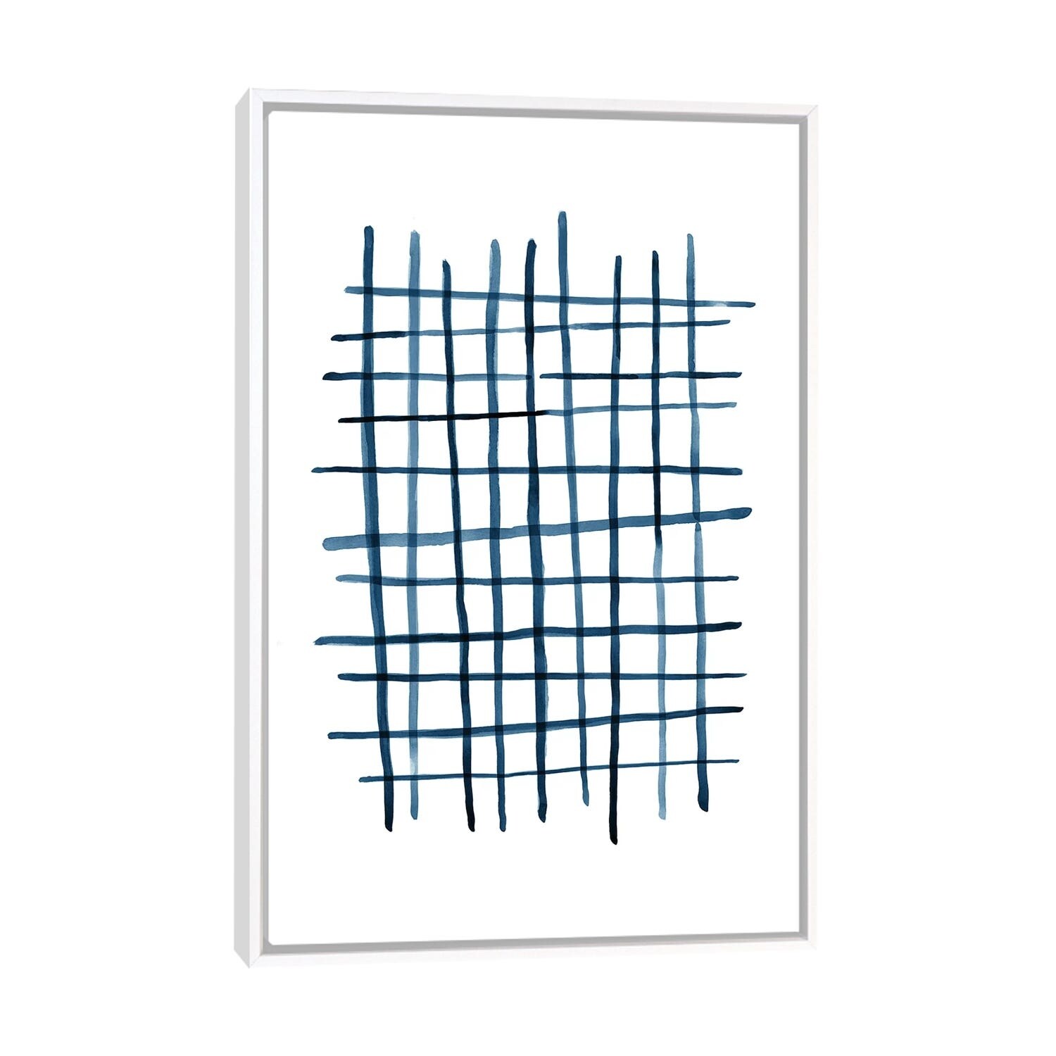 iCanvas "Watercolor Grid Navy Blue" by Nouveau Prints Framed