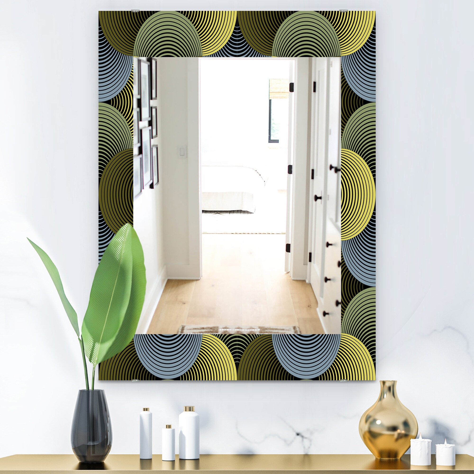Designart 'Ornate Geometric Petals Grid' Modern Mirror - Printed Wall Mirror
