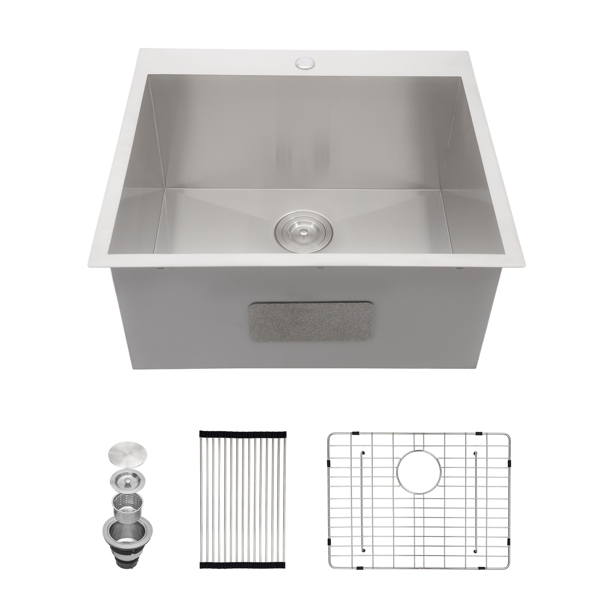 Transolid Classic 25-in 18 Gauge Drop-in Single Bowl Kitchen Sink with Grids, Strainer, Installation Kit
