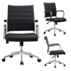 Black Office Chairs Mid Back Ribbed PU Leather Executive Task Work Conference with Arms Wheels Tilt Swivel Rolling